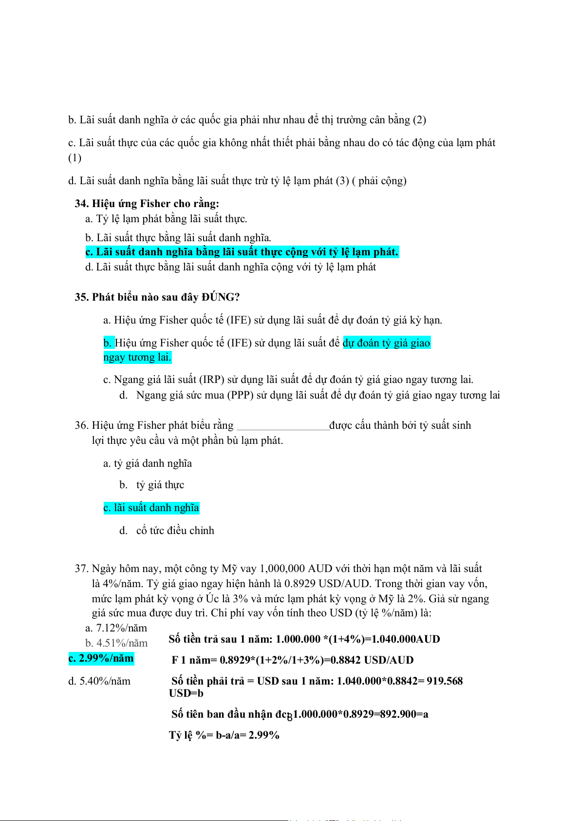 c. Giữa 2 thời điểm, đồng tiền tăng giá là đồng tiền có mức lạm phát cao hơn.