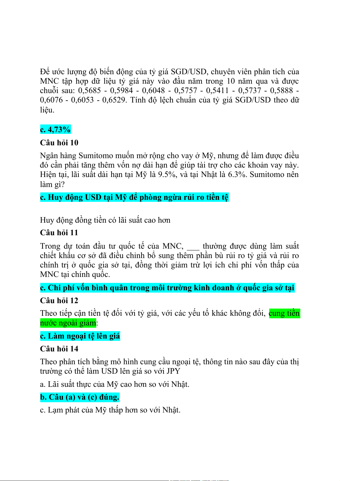 0,6076 - 0,6053 - 0,6529. Tính độ lệch chuẩn của tỷ giá SGD/USD theo dữ liệu. c. 4,73% Câu hỏi 10