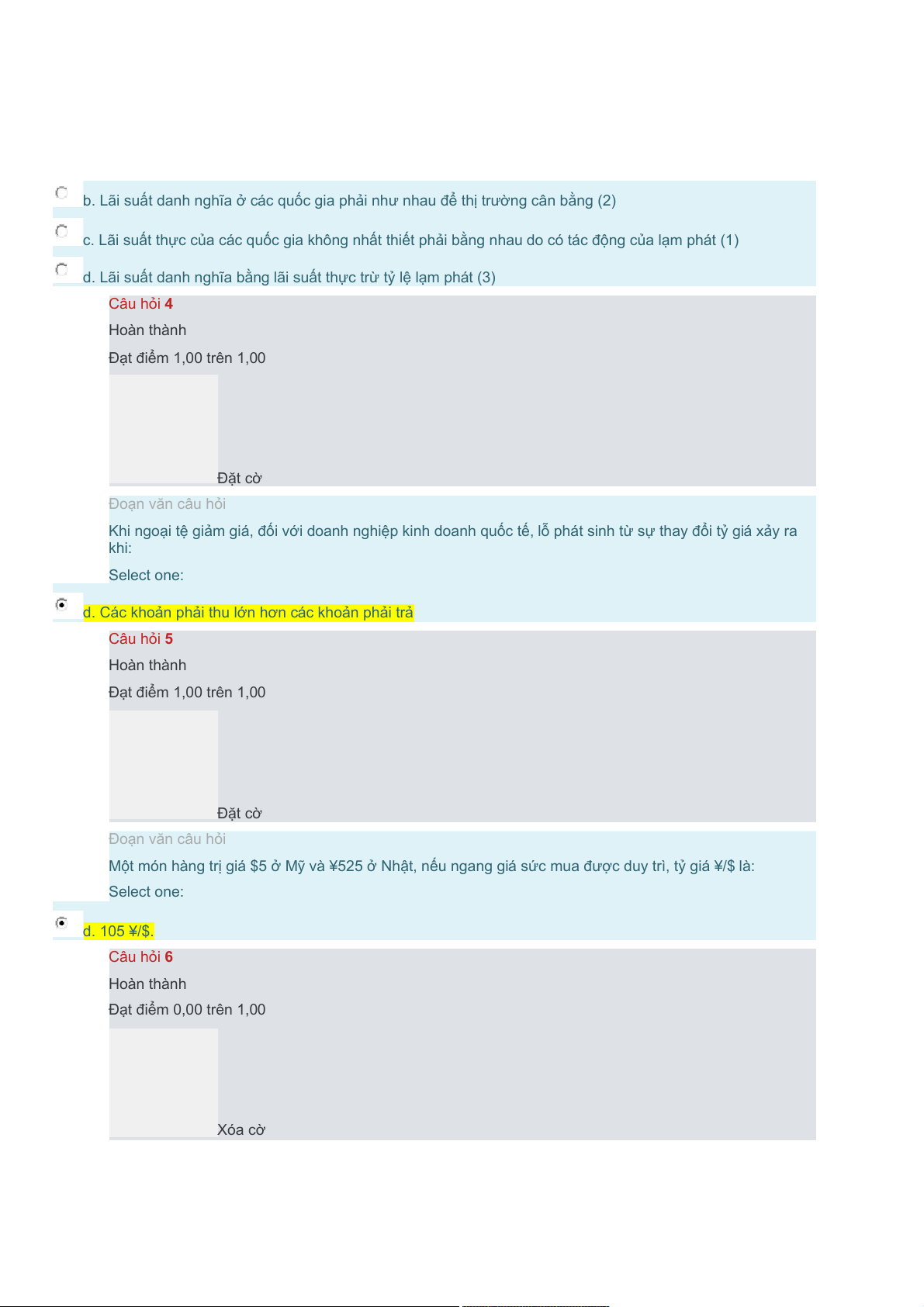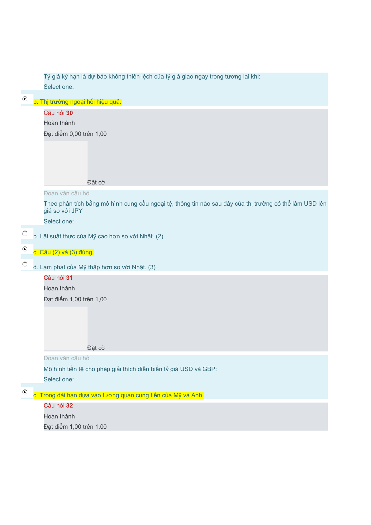 b. Thị trường ngoại hối hiệu quả. Câu hỏi 30 Hoàn thành Đạt điểm 0,00 trên 1,00 Đặt cờ Đoạn văn câu hỏi