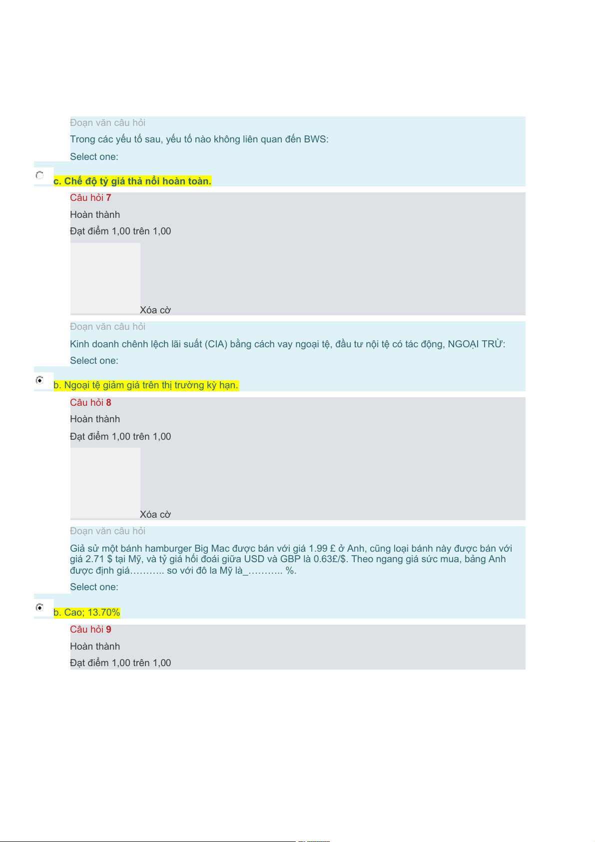 c.Chếđộtỷgiáthảnổihoàntoàn. Câu hỏi 7 Hoàn thành Đạt điểm 1,00 trên 1,00 Xóa cờ Đoạn văn câu hỏi