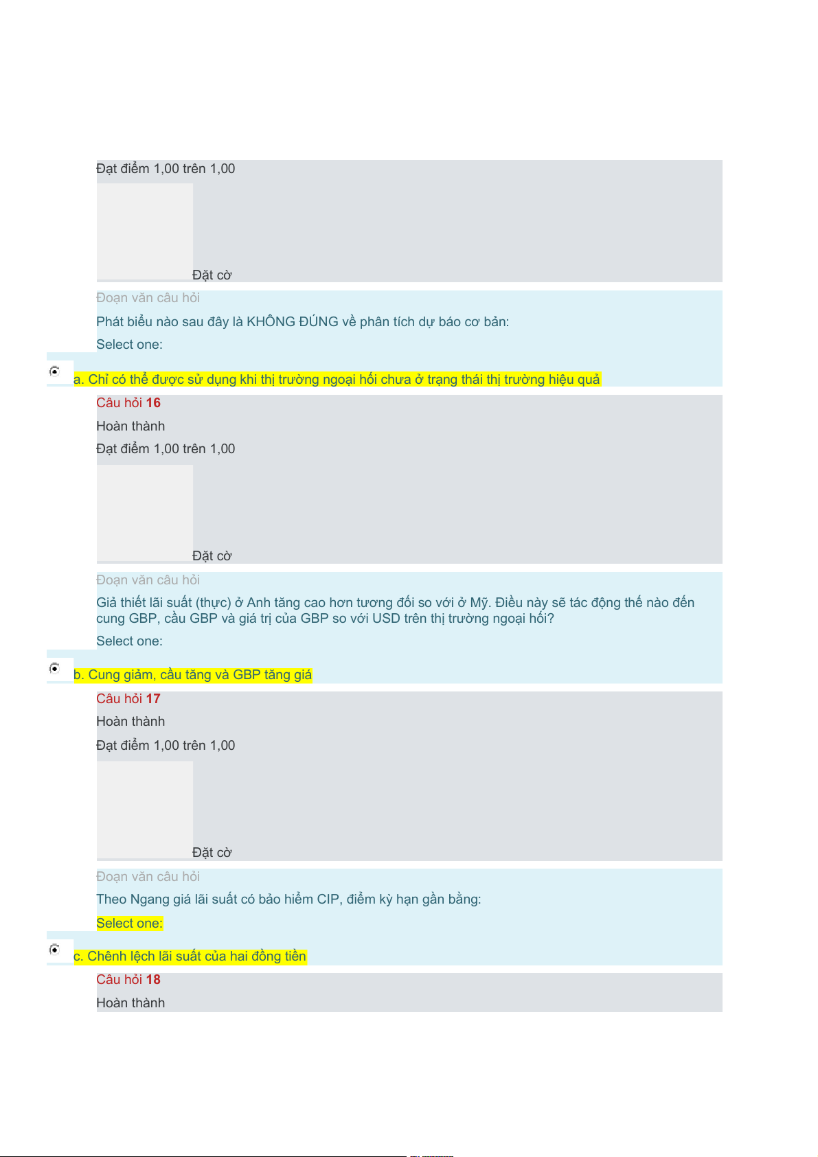 b. Cung giảm, cầu tăng và GBP tăng giá Câu hỏi 17 Hoàn thành Đạt điểm 1,00 trên 1,00 Đặt cờ Đoạn văn câu hỏi