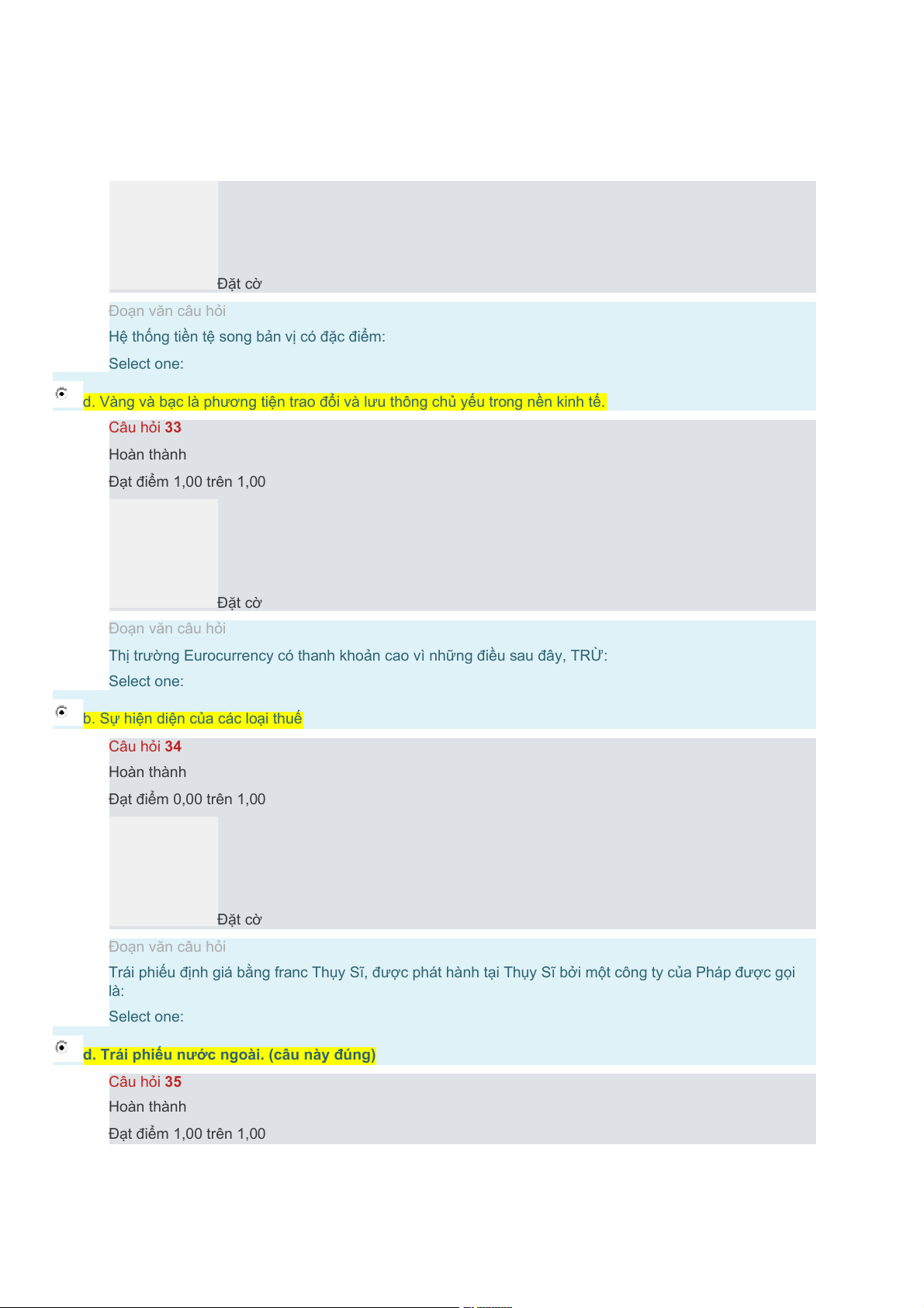 d.Tráiphiếunướcngoài.(câunàyđúng) Câu hỏi 35 Hoàn thành Đạt điểm 1,00 trên 1,00 Đặt cờ Đoạn văn câu hỏi