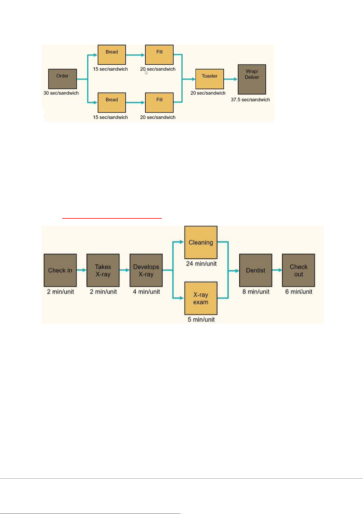 +Throughput time is 30 + 15 + 20 + 20 + 37.5 = 122.5 seconds/sandwich. 2.2/ Simultaneously process: