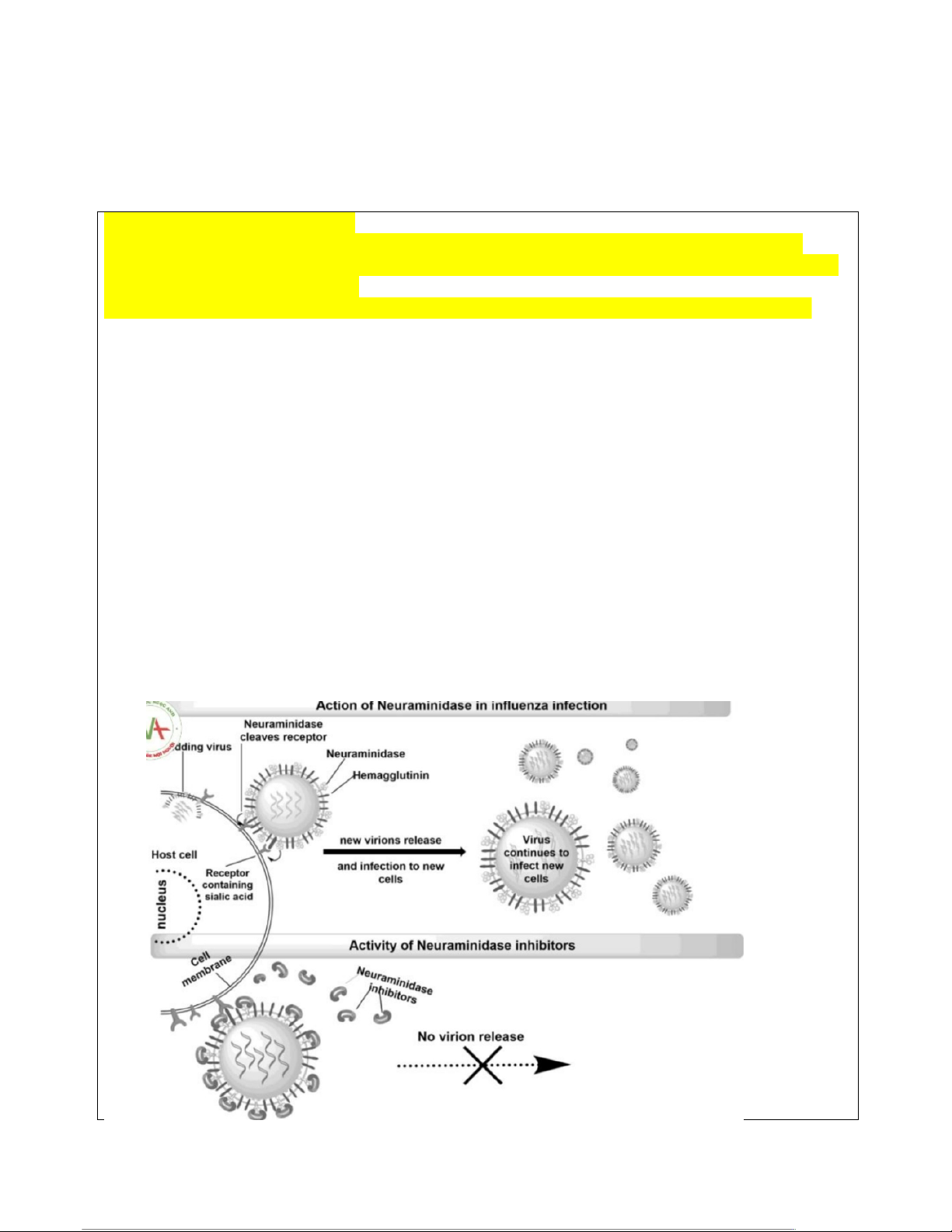 của Neuraminidase (Enzym của virus ) ( ức chế và khóa Neuraminidase) làm chúng không có tác dụng