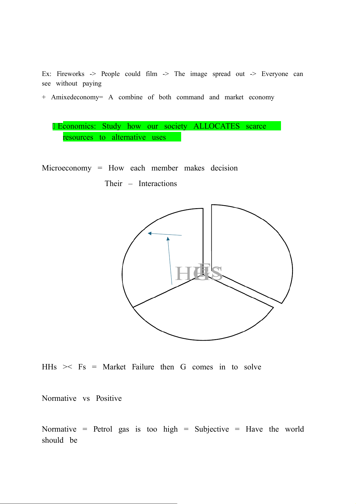 HHs >< Fs = Market Failure then G comes in to solve Normative vs Positive