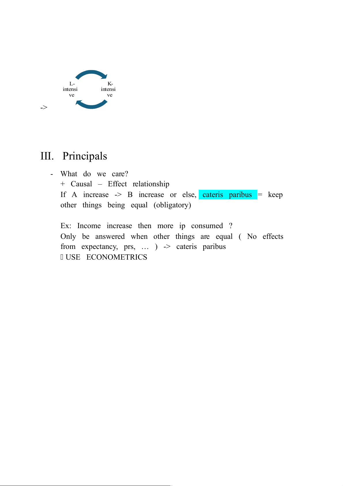 -> Vietnam L is relatively cheaper, and US K is relatively cheaper L- K- intensi intensi ve ve -> III. Principals - What do we care?