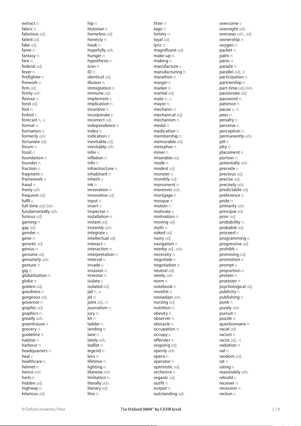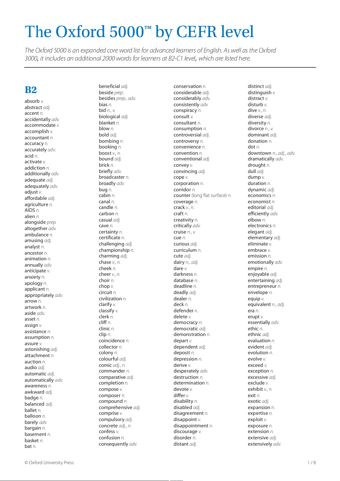 The Oxford 5000™ by CEFR level 8 / 8