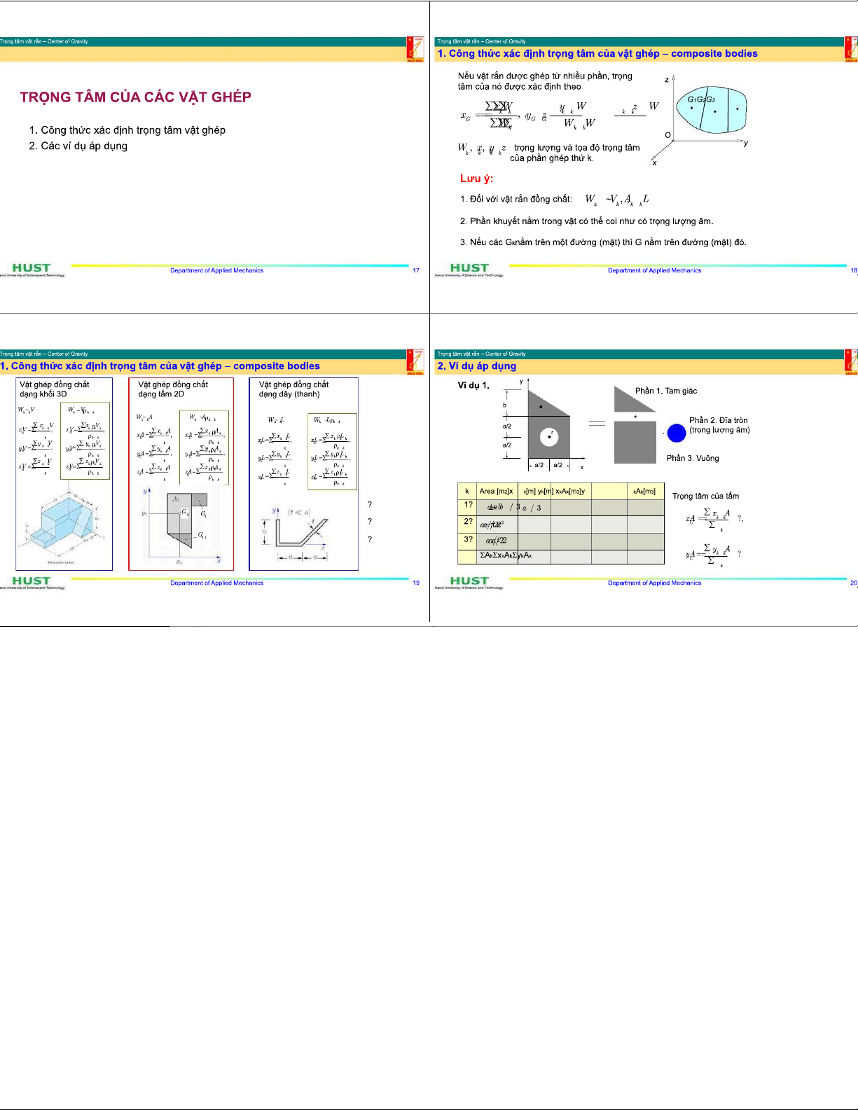 P1-TH-C6 Trọng tâm của vật rắn trong Cơ học Kỹ thuật