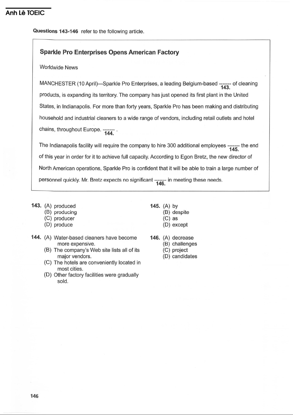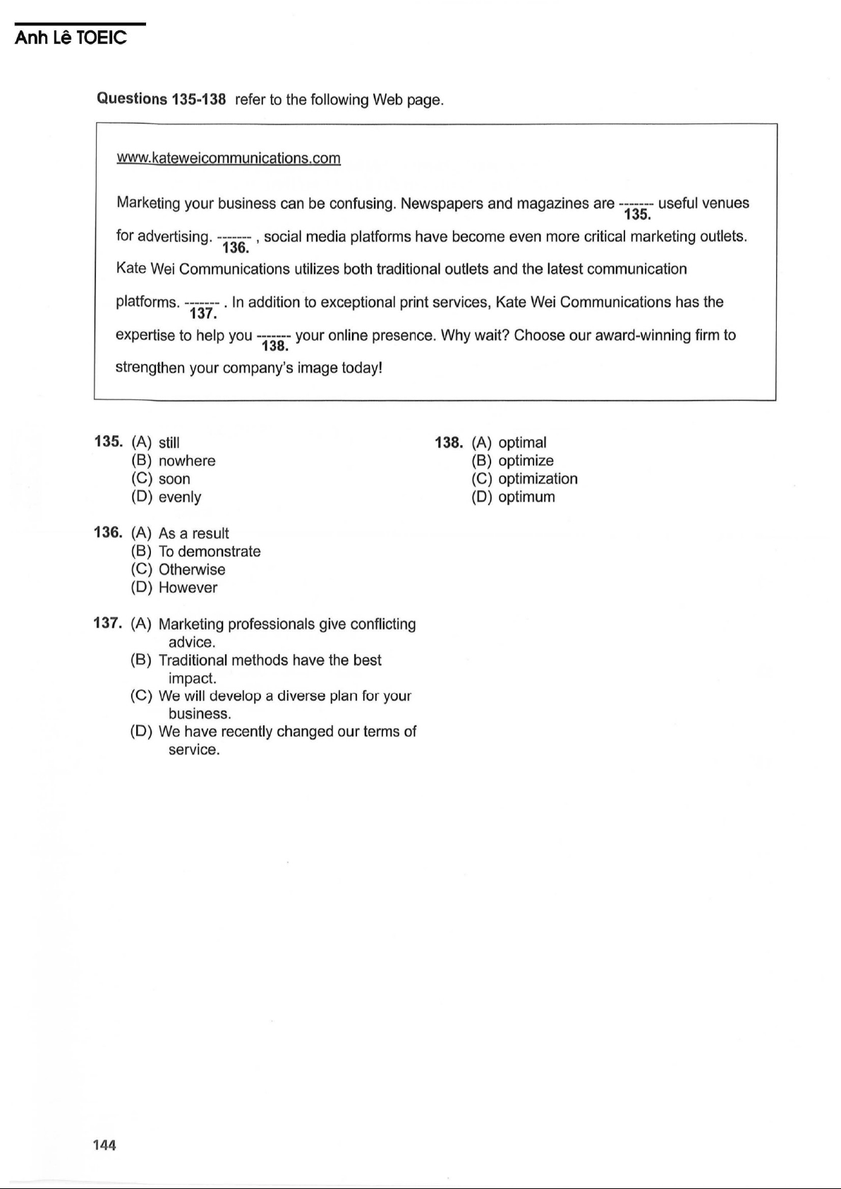Part 6 Test 4 | Tài liệu Tiếng Anh