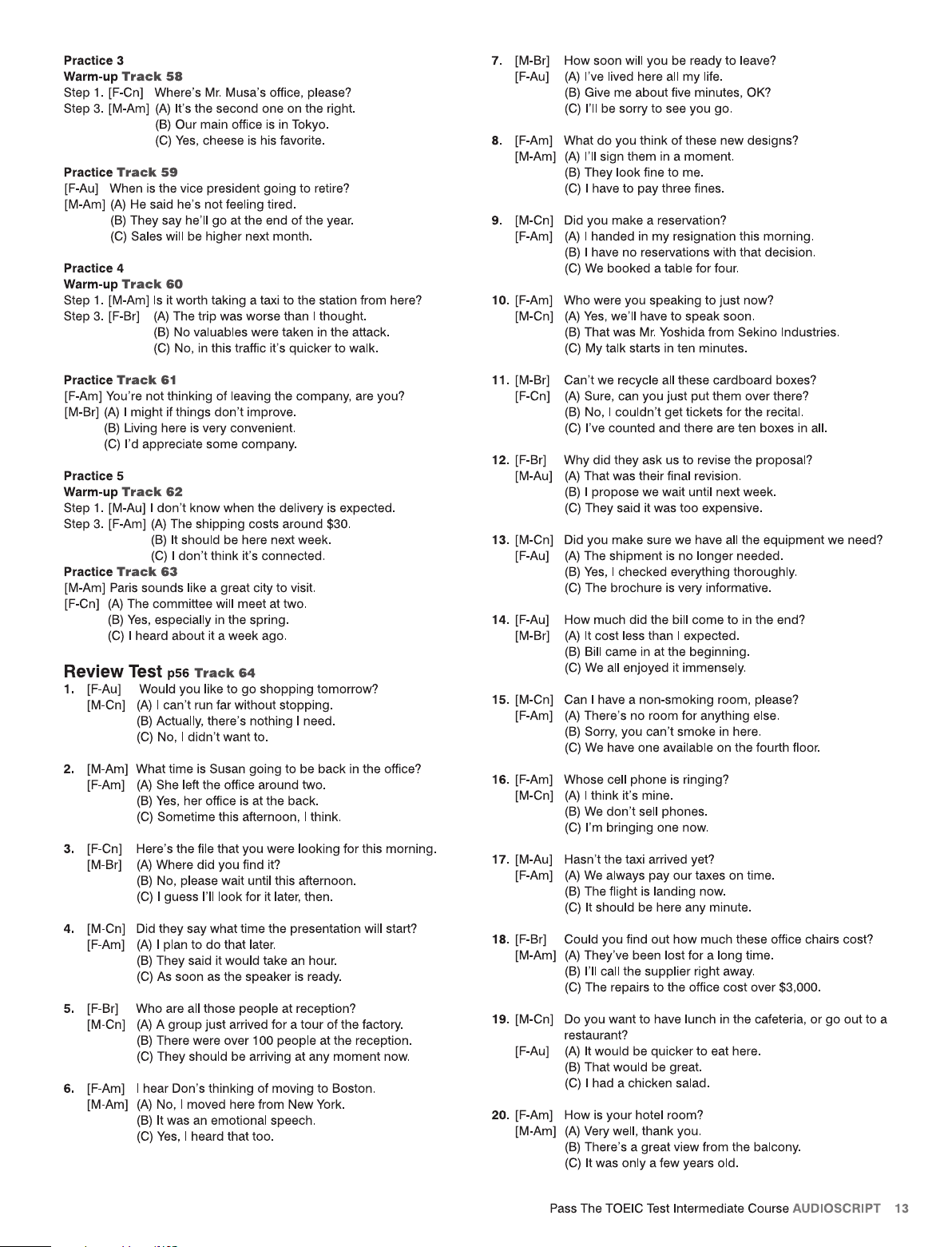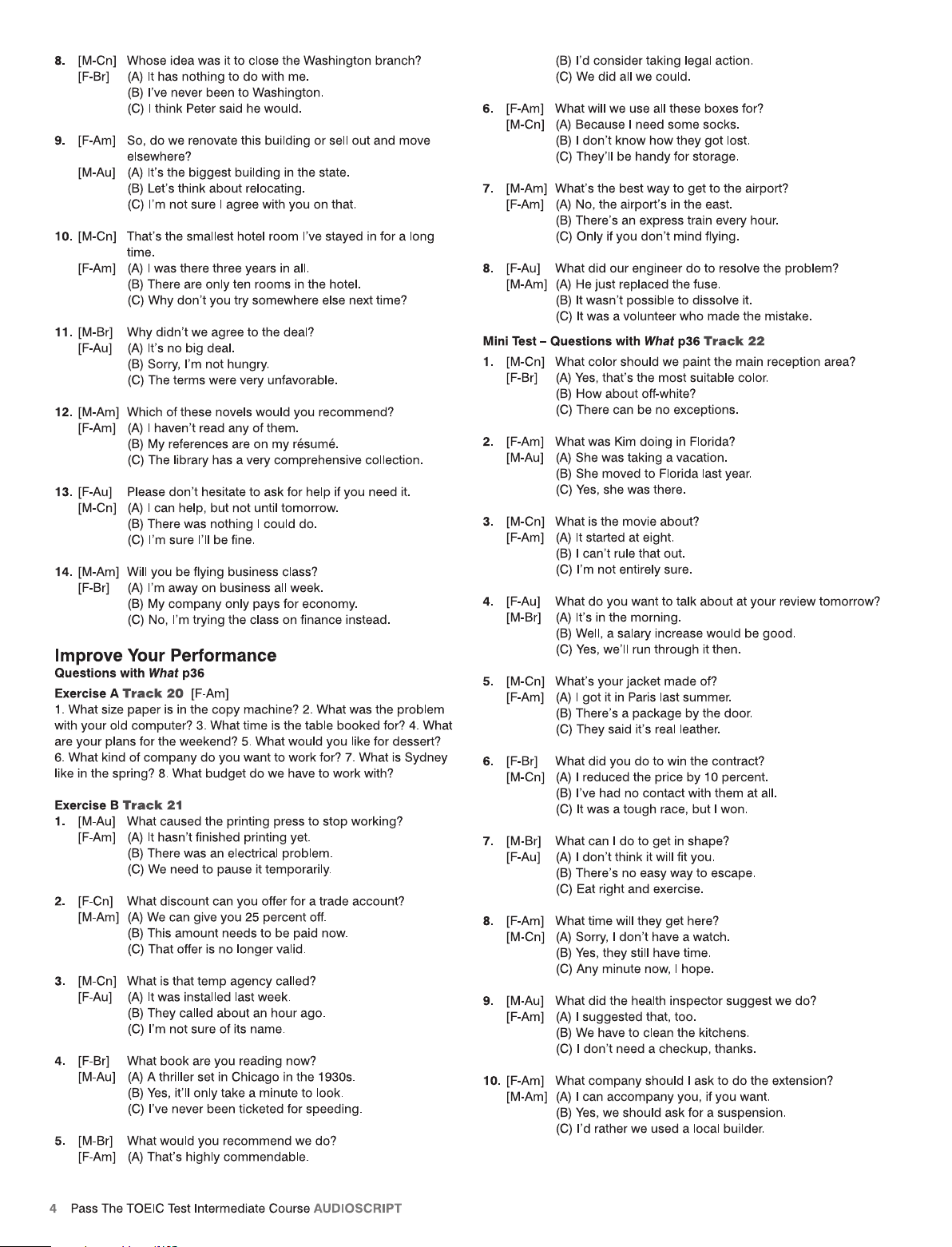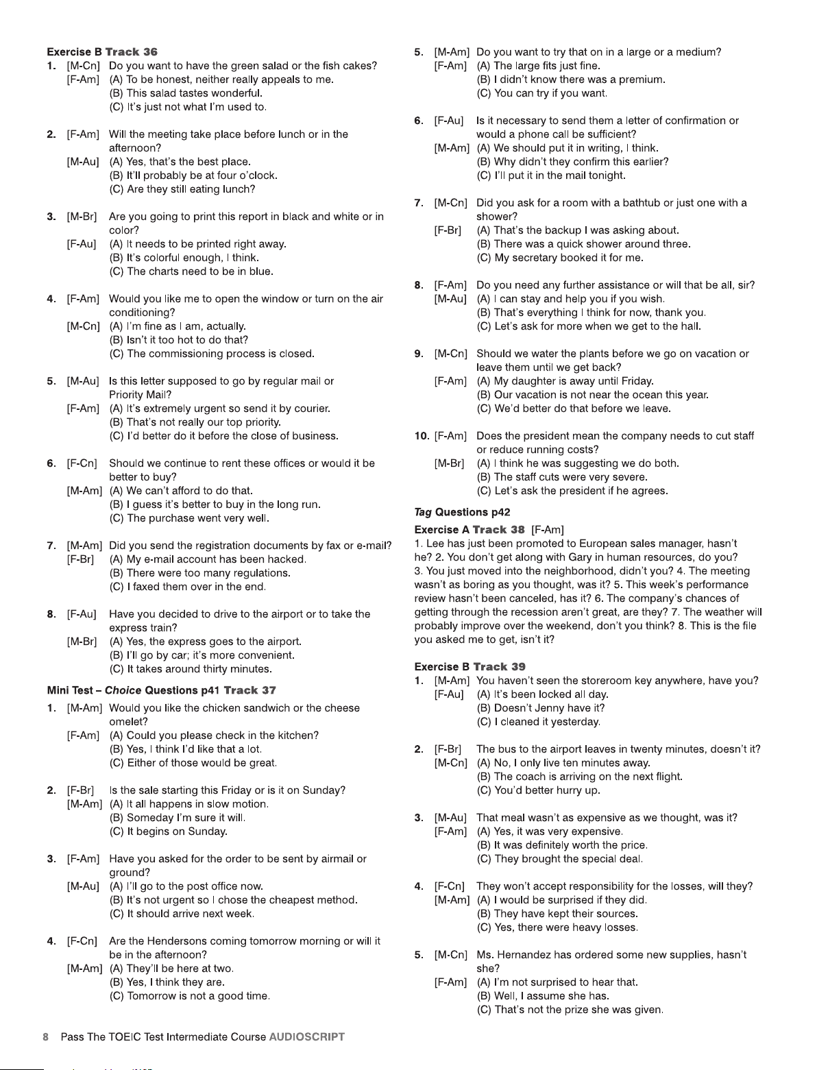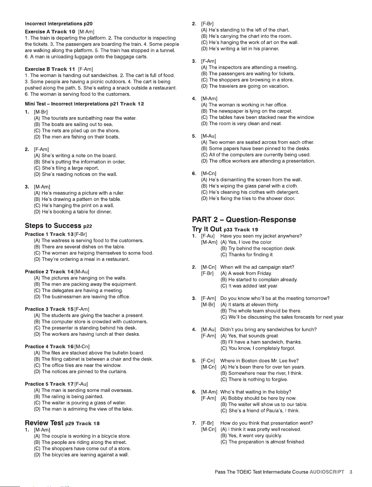 Pass The Toeic Test (Inter) - Answer Keys + Scripts