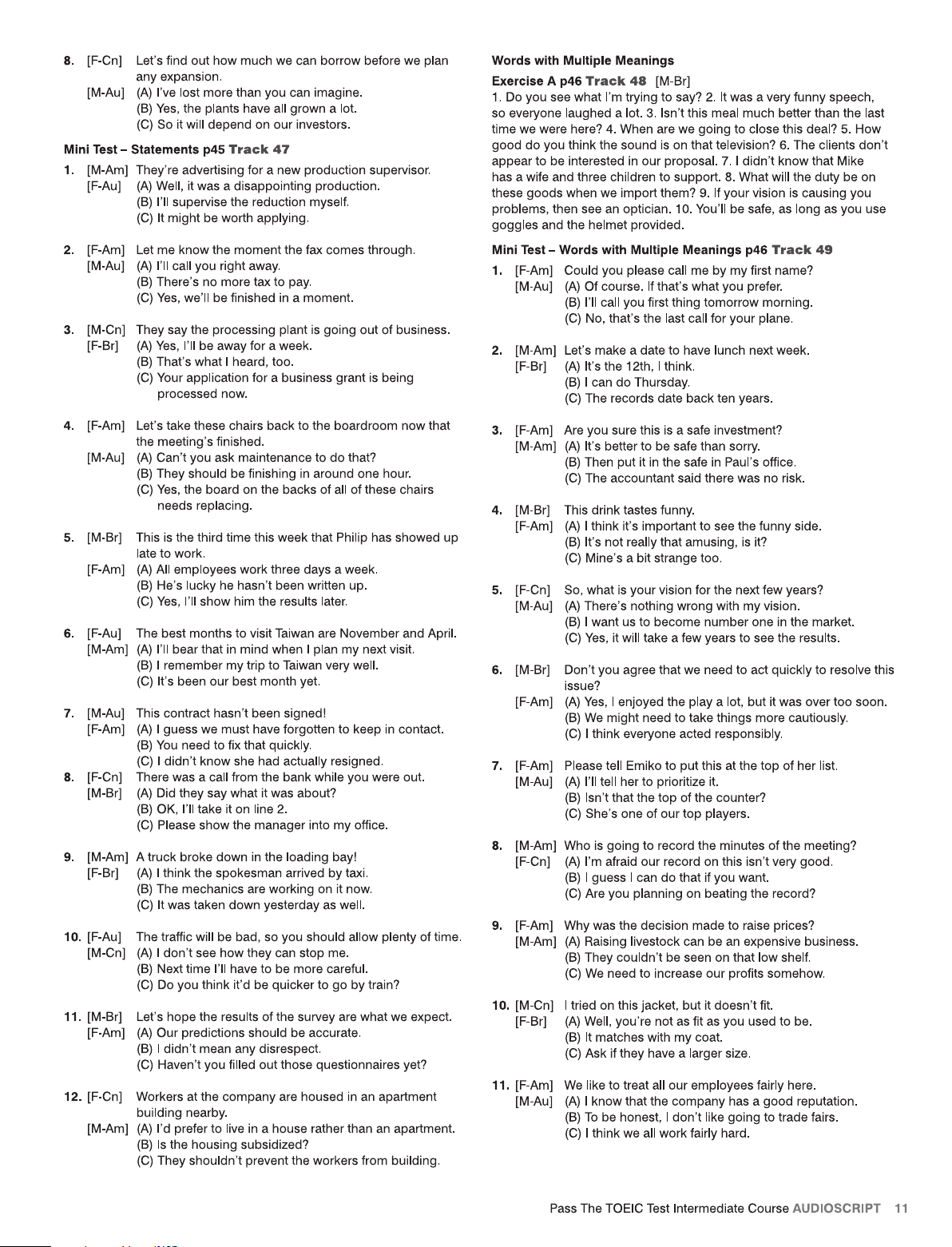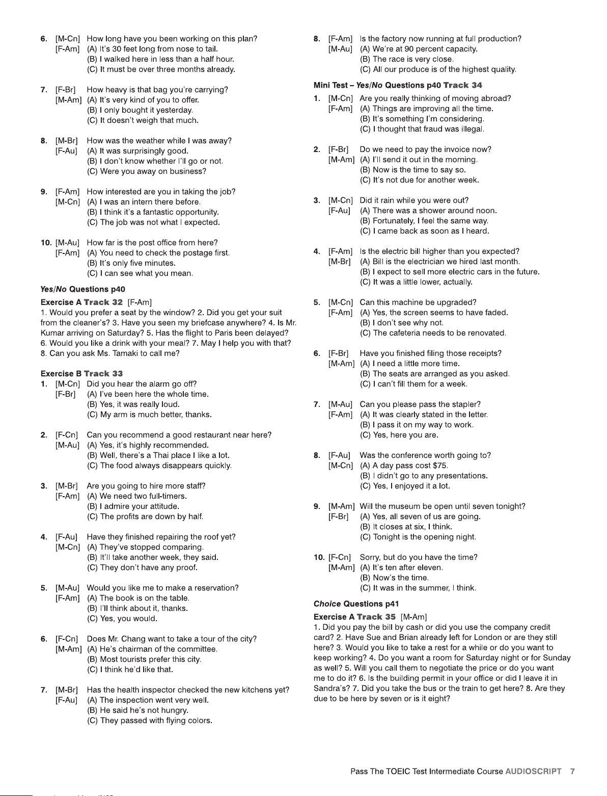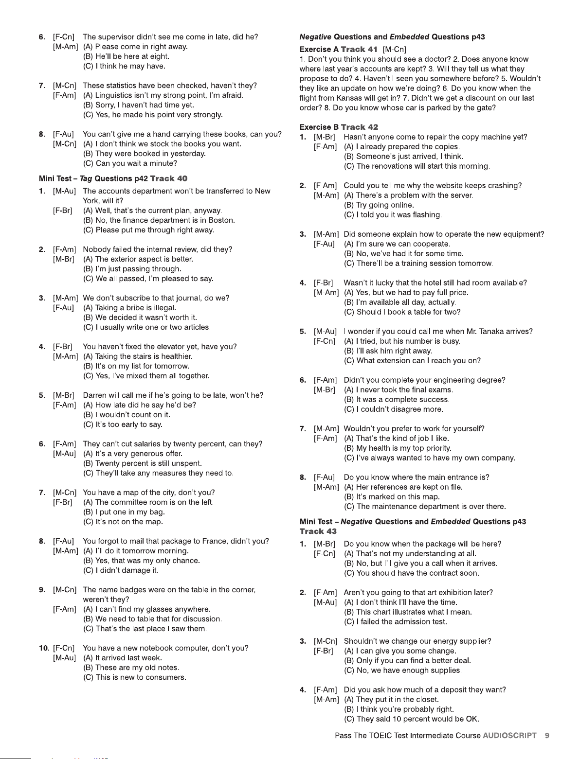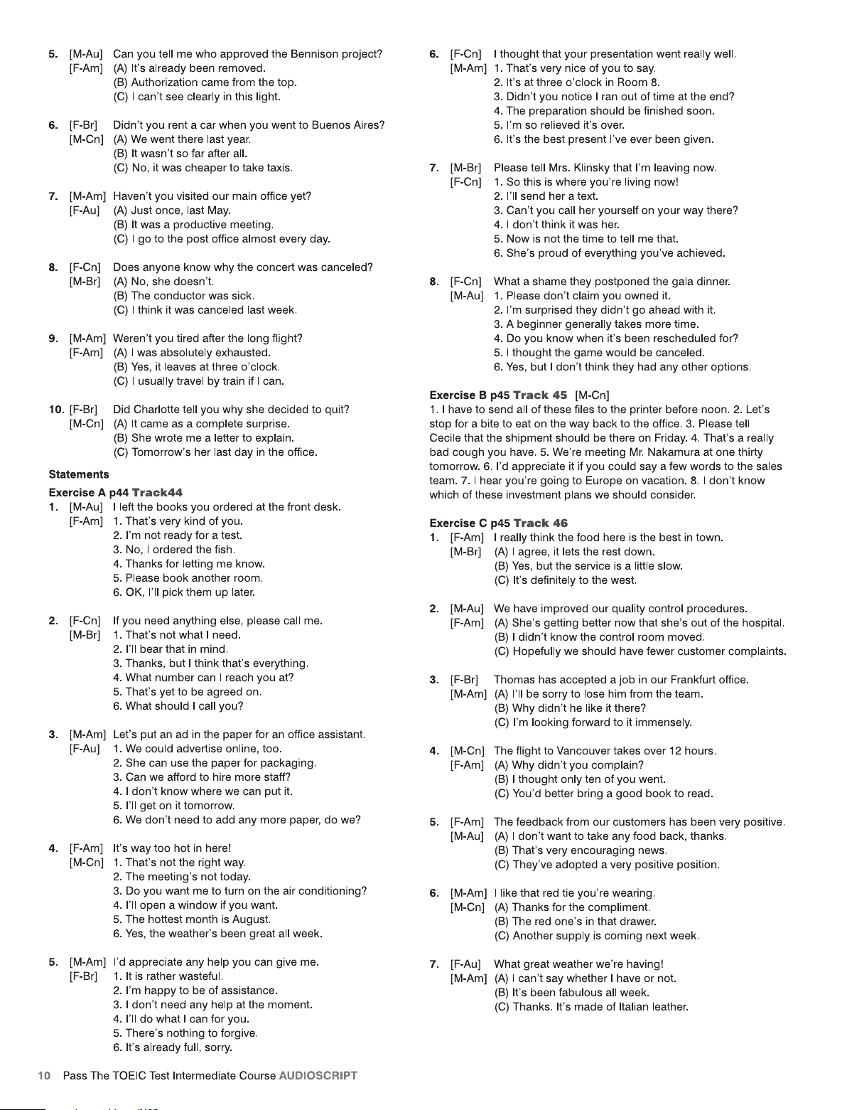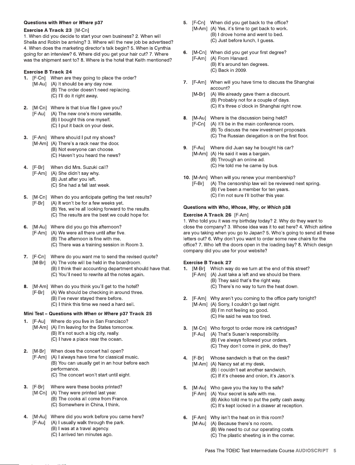 Pass The Toeic Test (Inter) - Answer Keys + Scripts