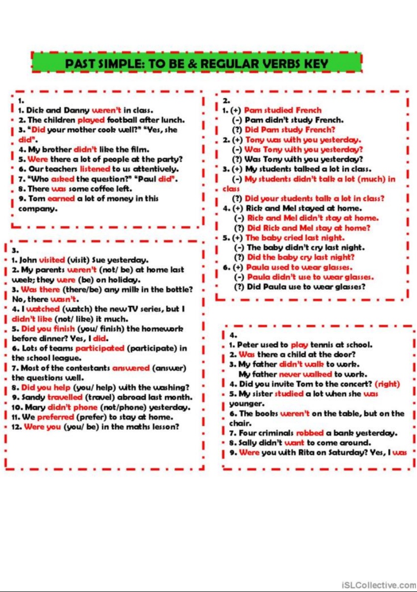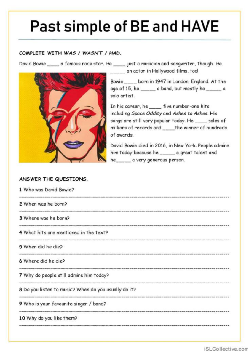 Past simple of BE and HAVE