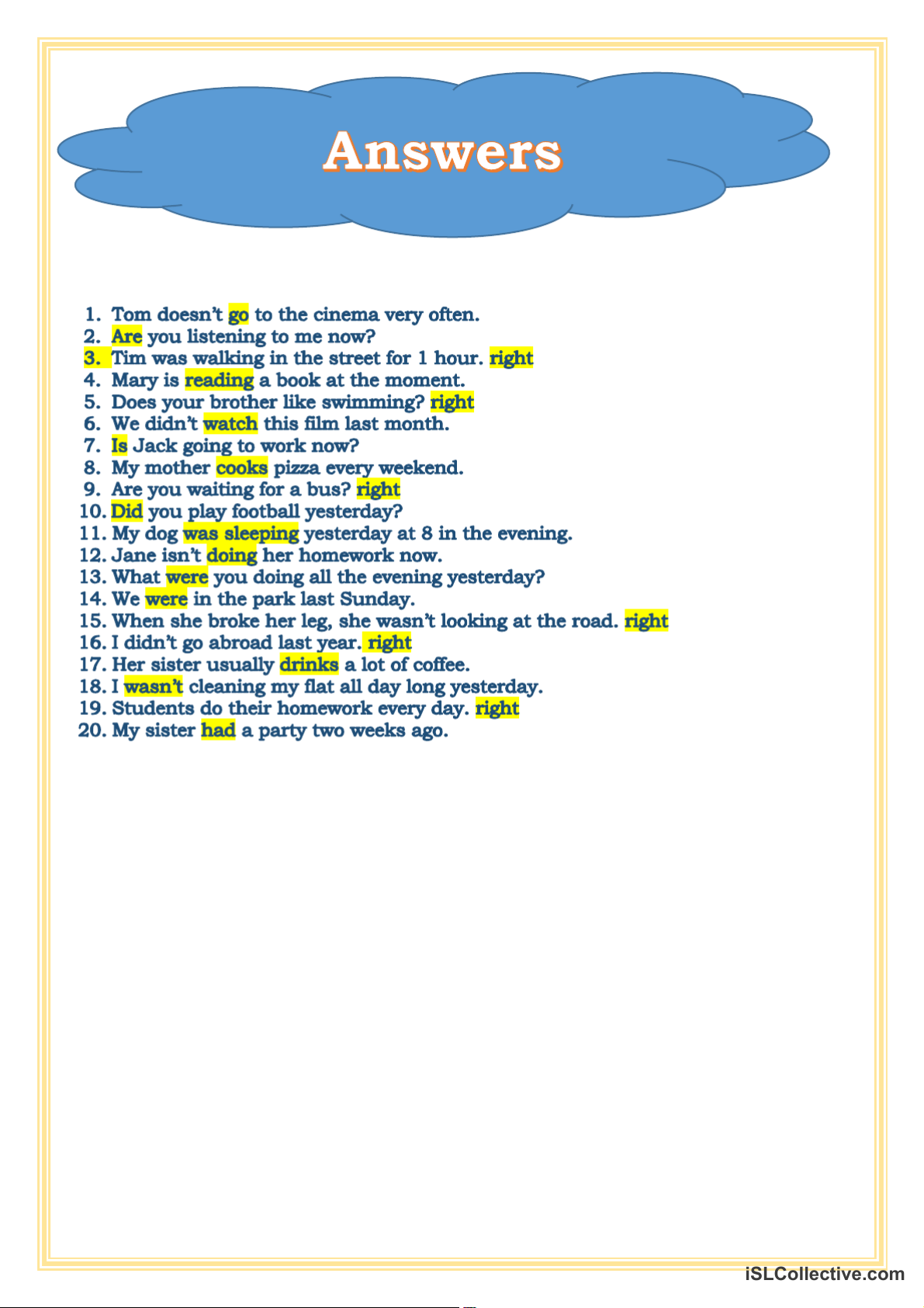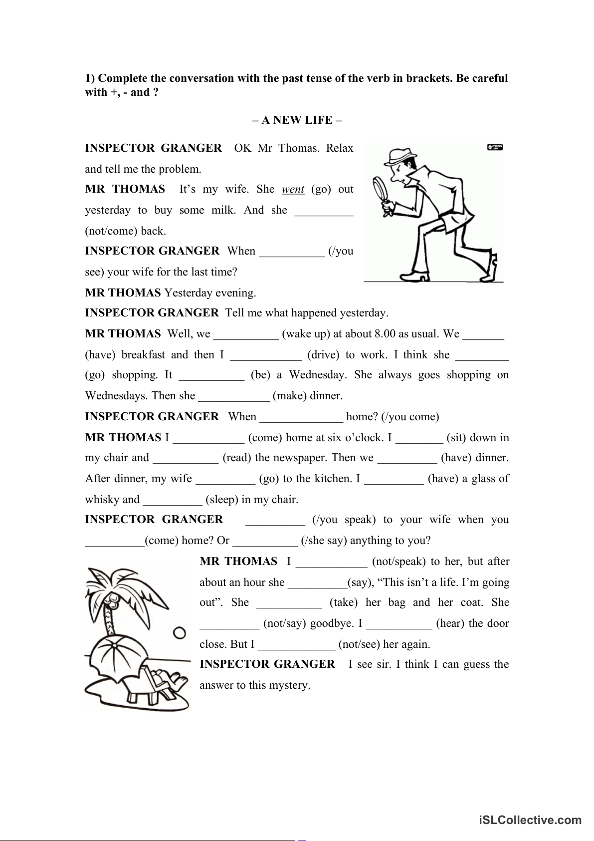 1) Complete the conversation with the past tense of the verb in brackets. Be careful with +, - and ? – A NEW LIFE –