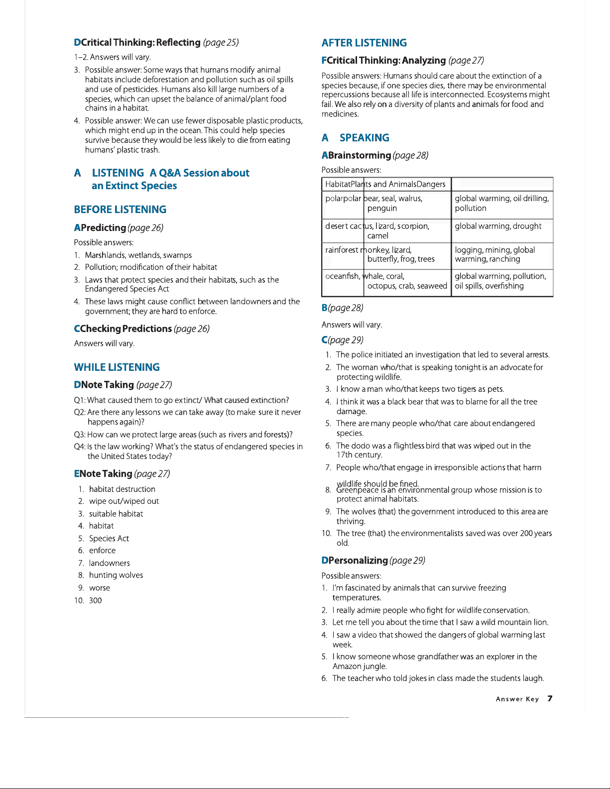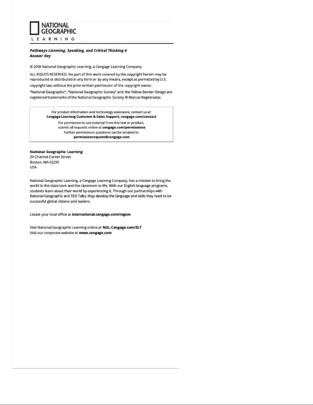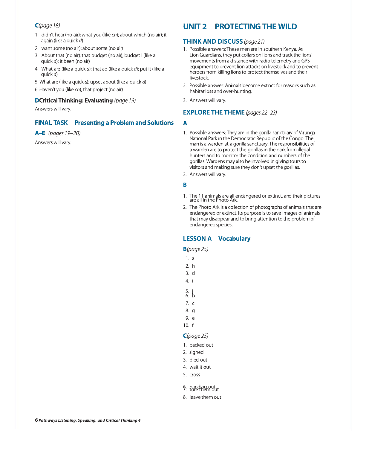 Pathways 4: Answer Keys for Listening, Speaking, & Critical Thinking