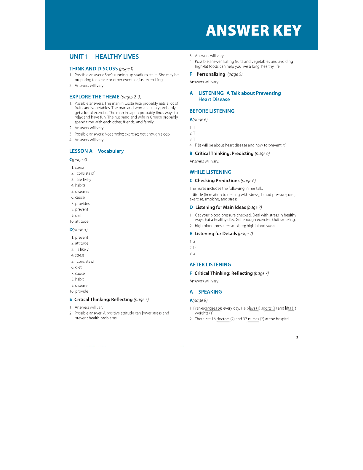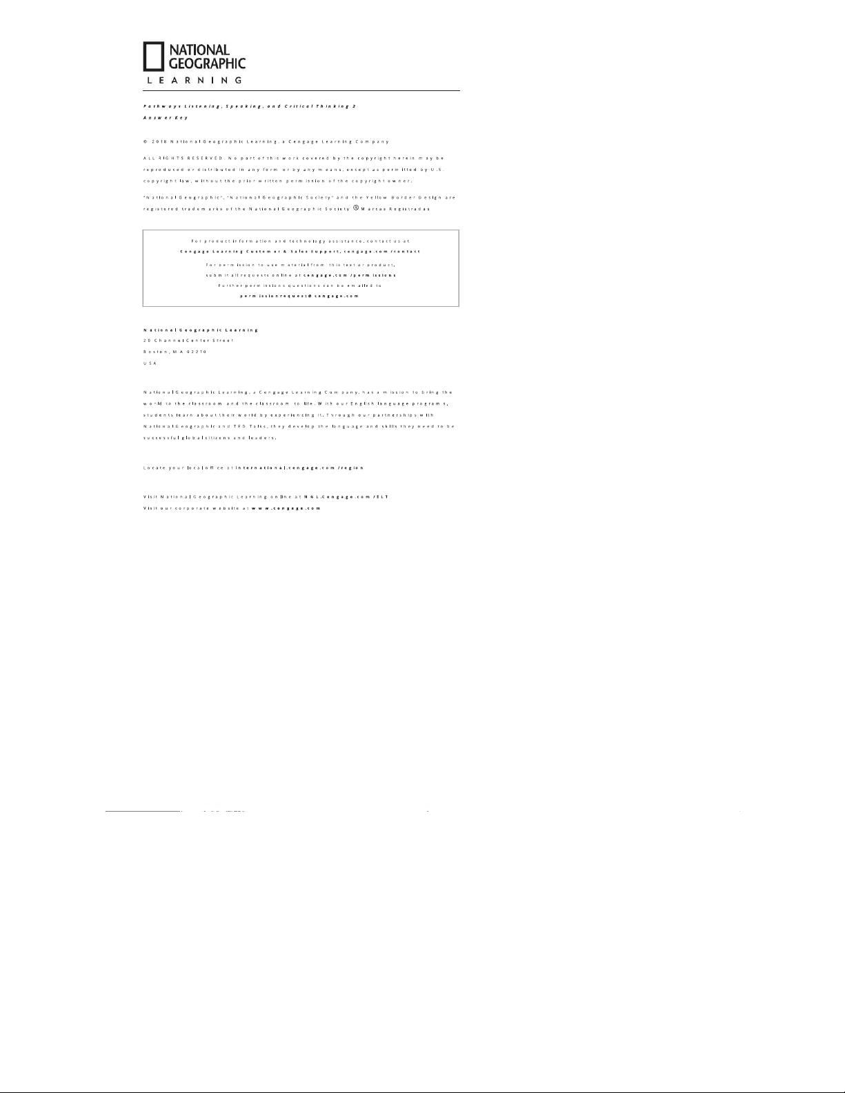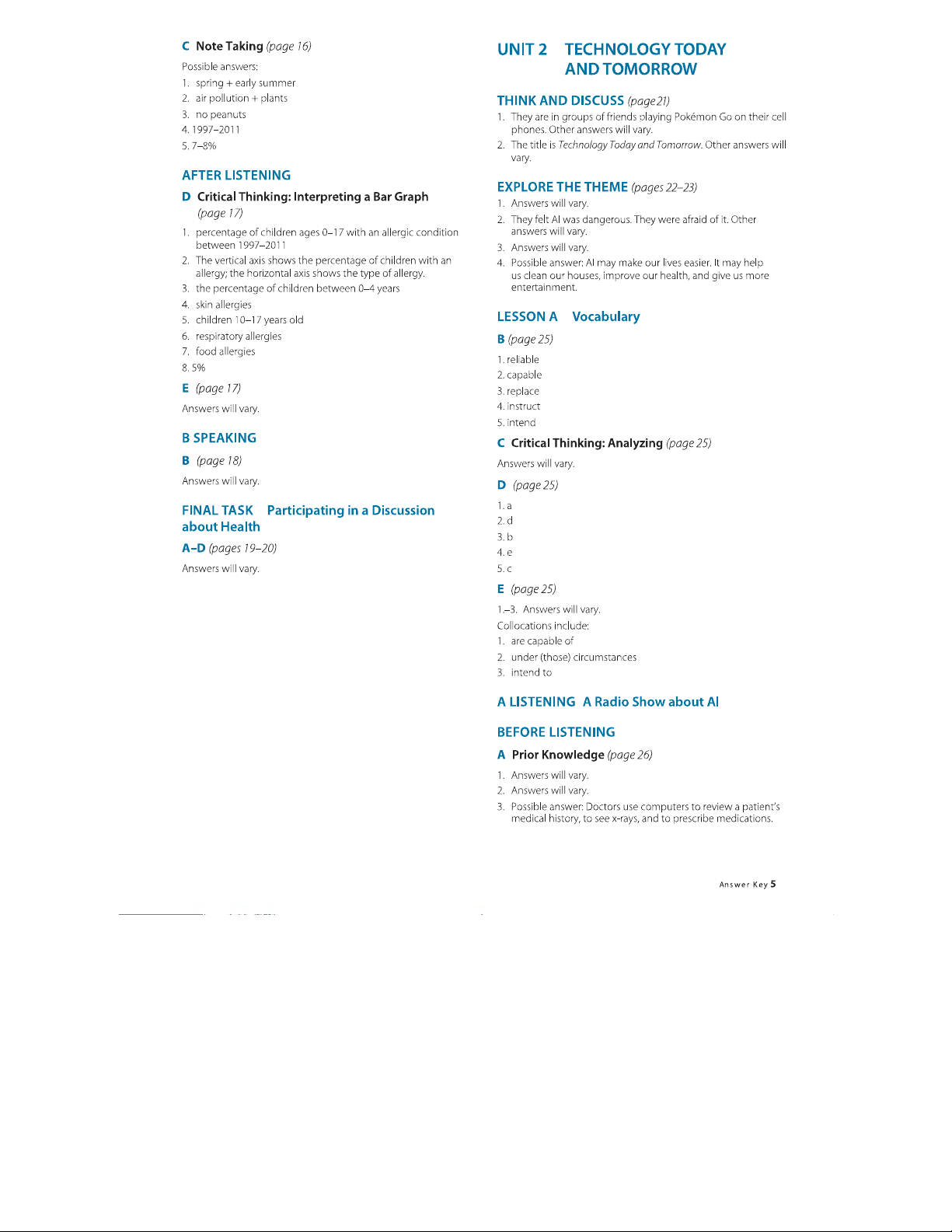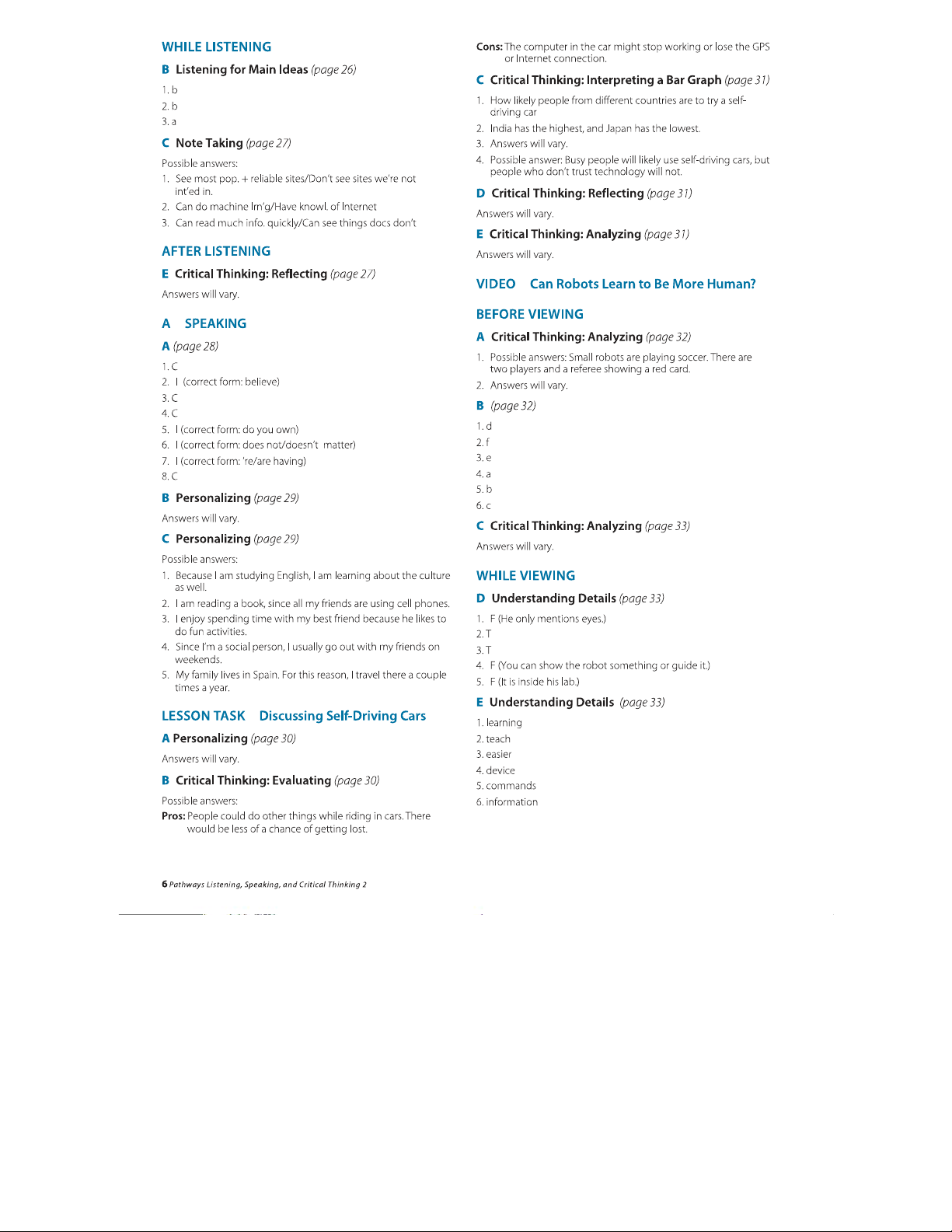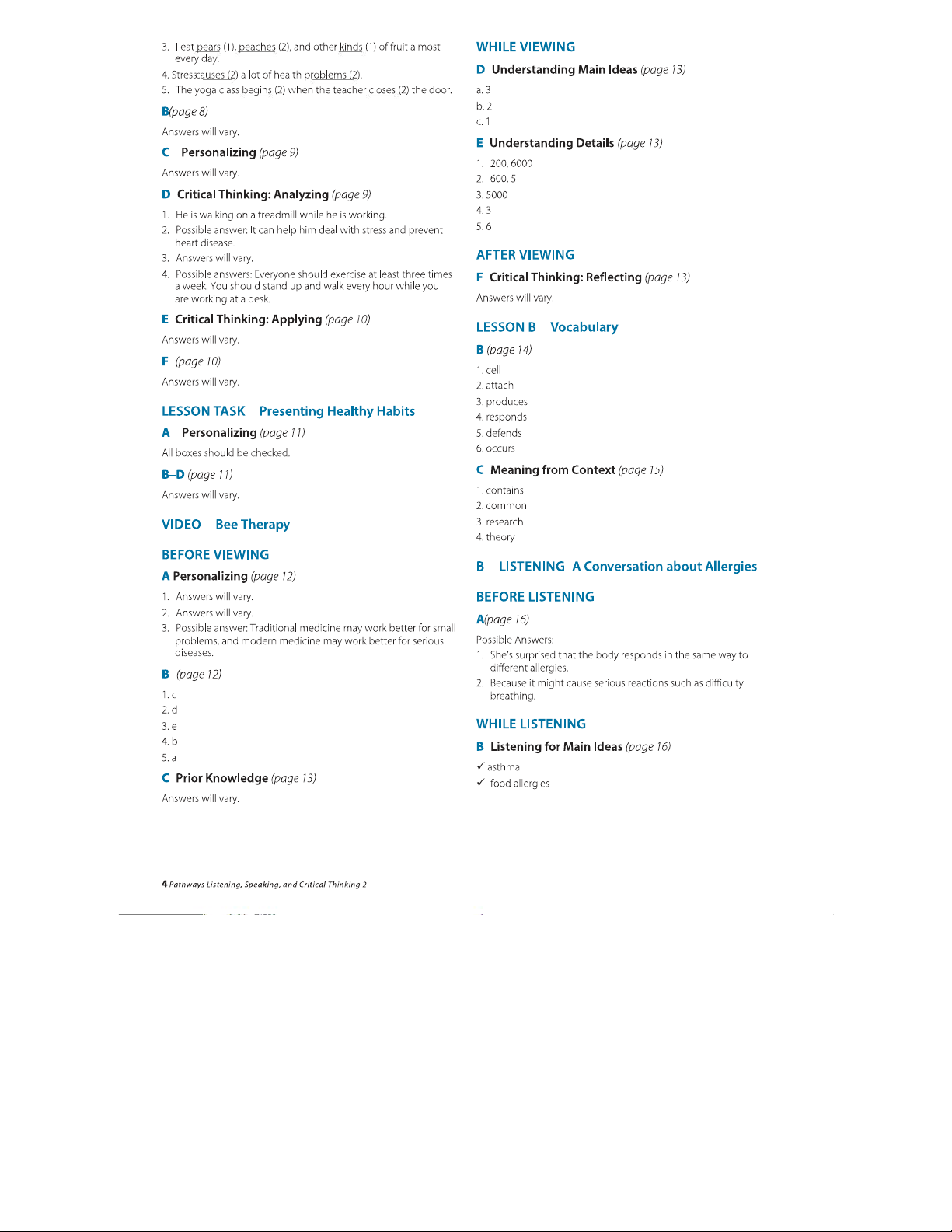 Pathways LS 2: Listening, Speaking, and Critical Thinking Answer Key