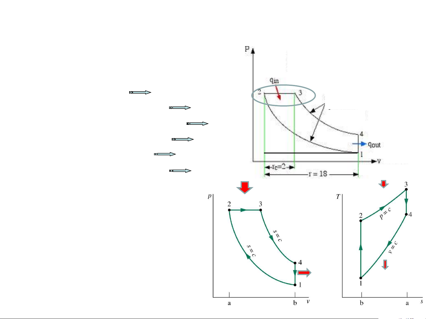Bốn kỳ hoạt động của động cơ Tỷ số nén r = v1/v2 =18; trong chu trình Tỷ số cắt rC = v3/v2 =2;