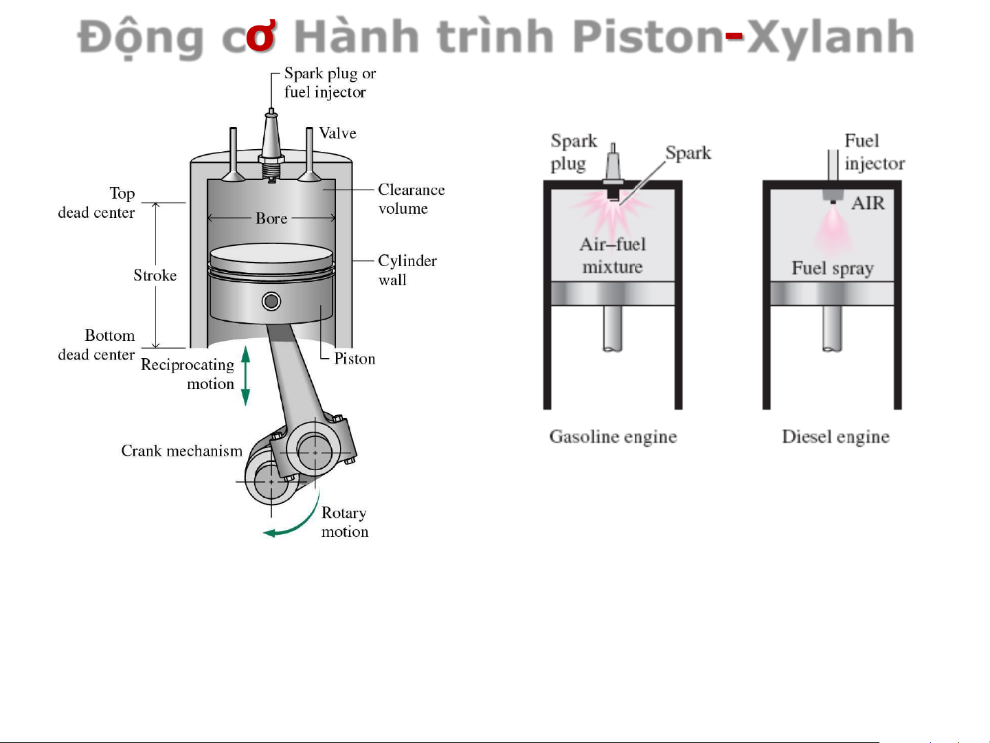 Vị trí của Piston trong xylanh ở các kỳ trong chu trình
