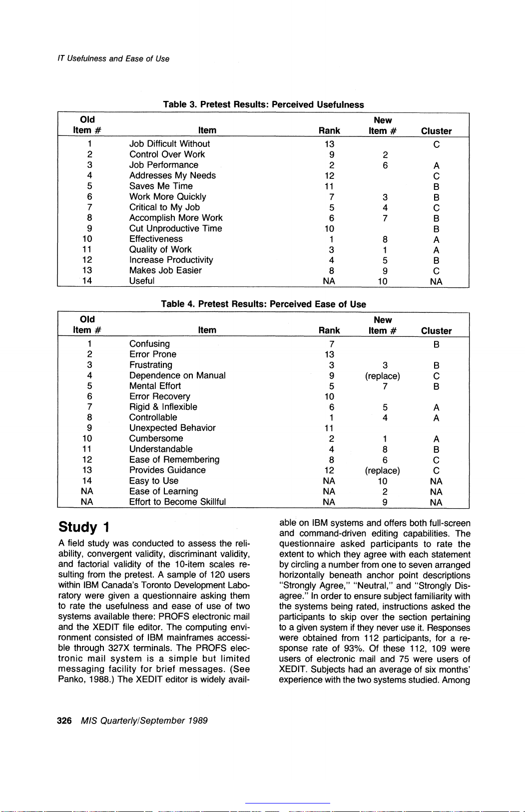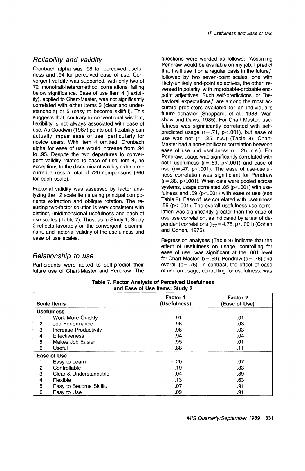 Usefulness and Ease of Use