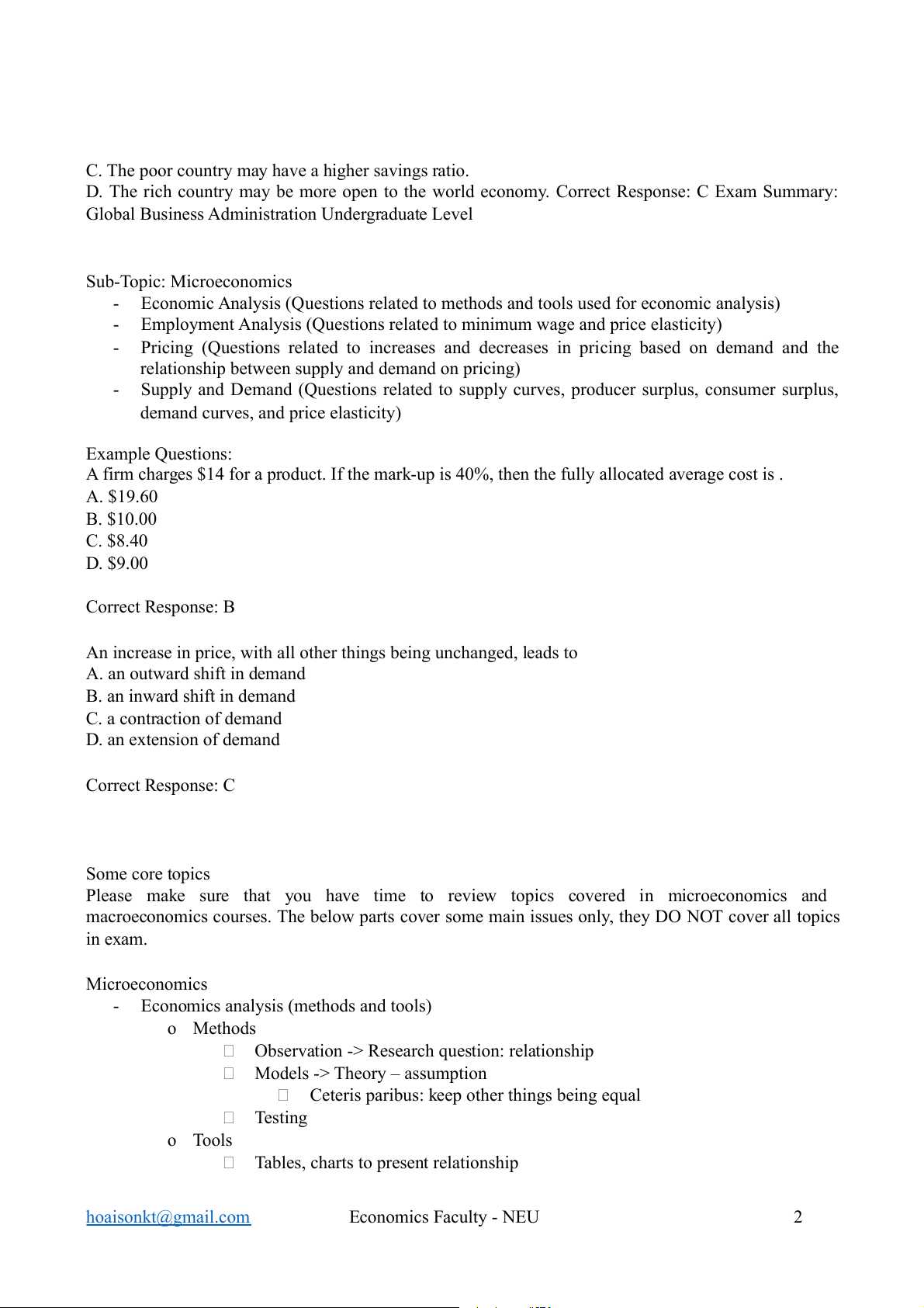 macroeconomics courses. The below parts cover some main issues only, they DO NOT cover all topics in exam. Microeconomics -