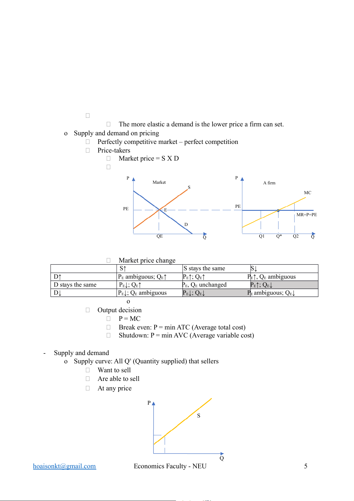 P = MC + Markup (Markup = P – MC) (Note. Sometimes, Markup = P – AC) MC = S P* MC(Q*) hoaisonkt@gmail.com Economics F D aculty - NEU 4 MR Q*