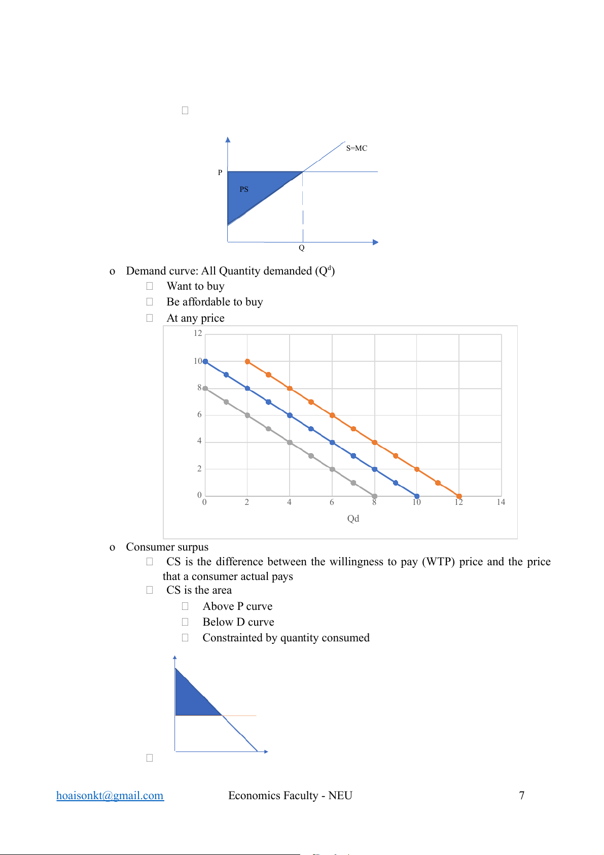 The differences between the willingness to sell price and the actual sold price. The area Above S Below price curve Constrainted by quantity sold hoaisonkt@gmail.com Economics Faculty - NEU 6 S=MC P PS Q
