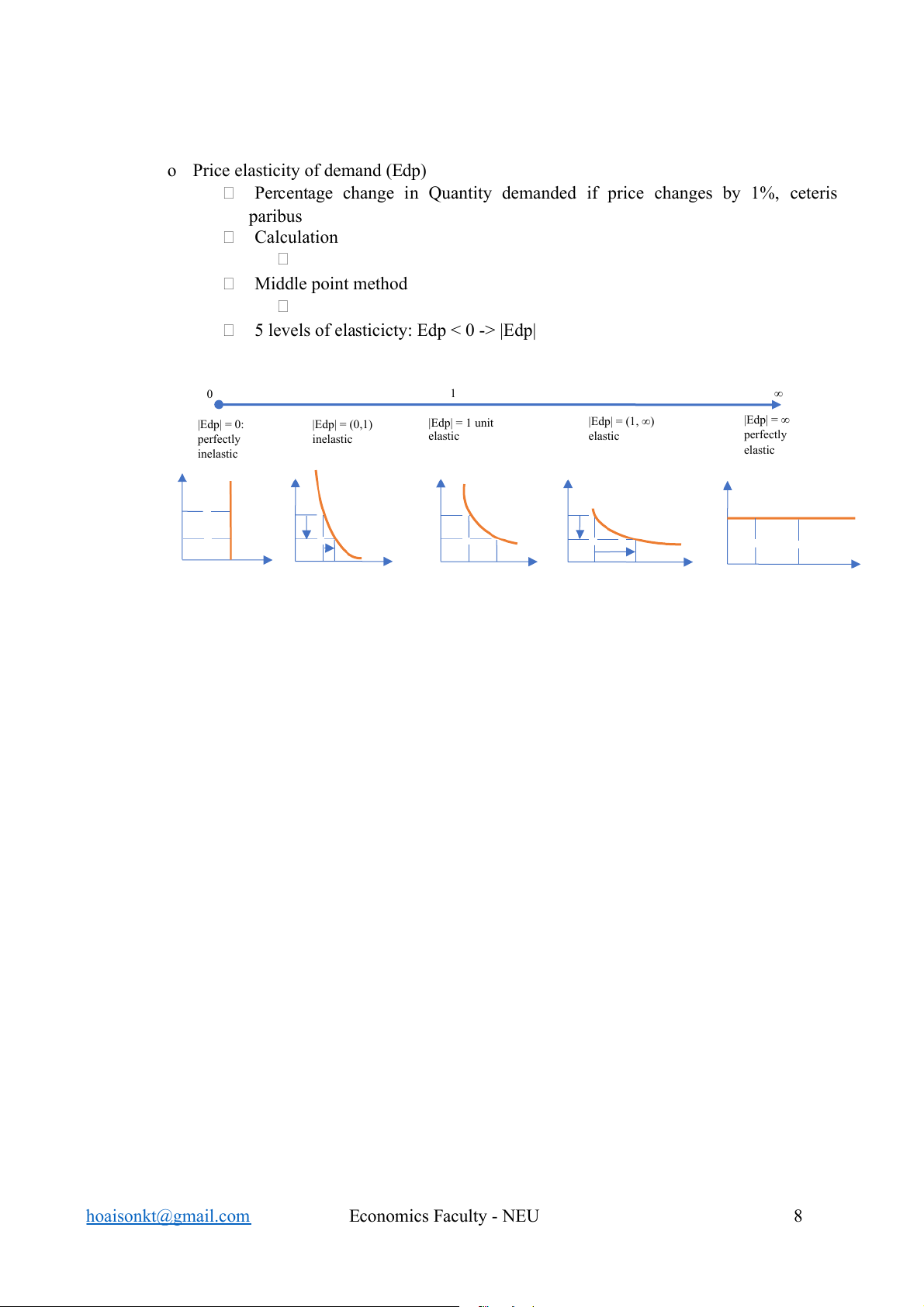 5 levels of elasticicty: Edp < 0 -> |Edp| 0 1 ∞ |Edp| = 0: |Edp| = (0,1) |Edp| = 1 unit |Edp| = (1, ∞) |Edp| = ∞ perfectly inelastic elastic elastic perfectly inelastic elastic hoaisonkt@gmail.com Economics Faculty - NEU 8 Macroeconomics - Gross Domestic Product o GDP = C + I + G + NX