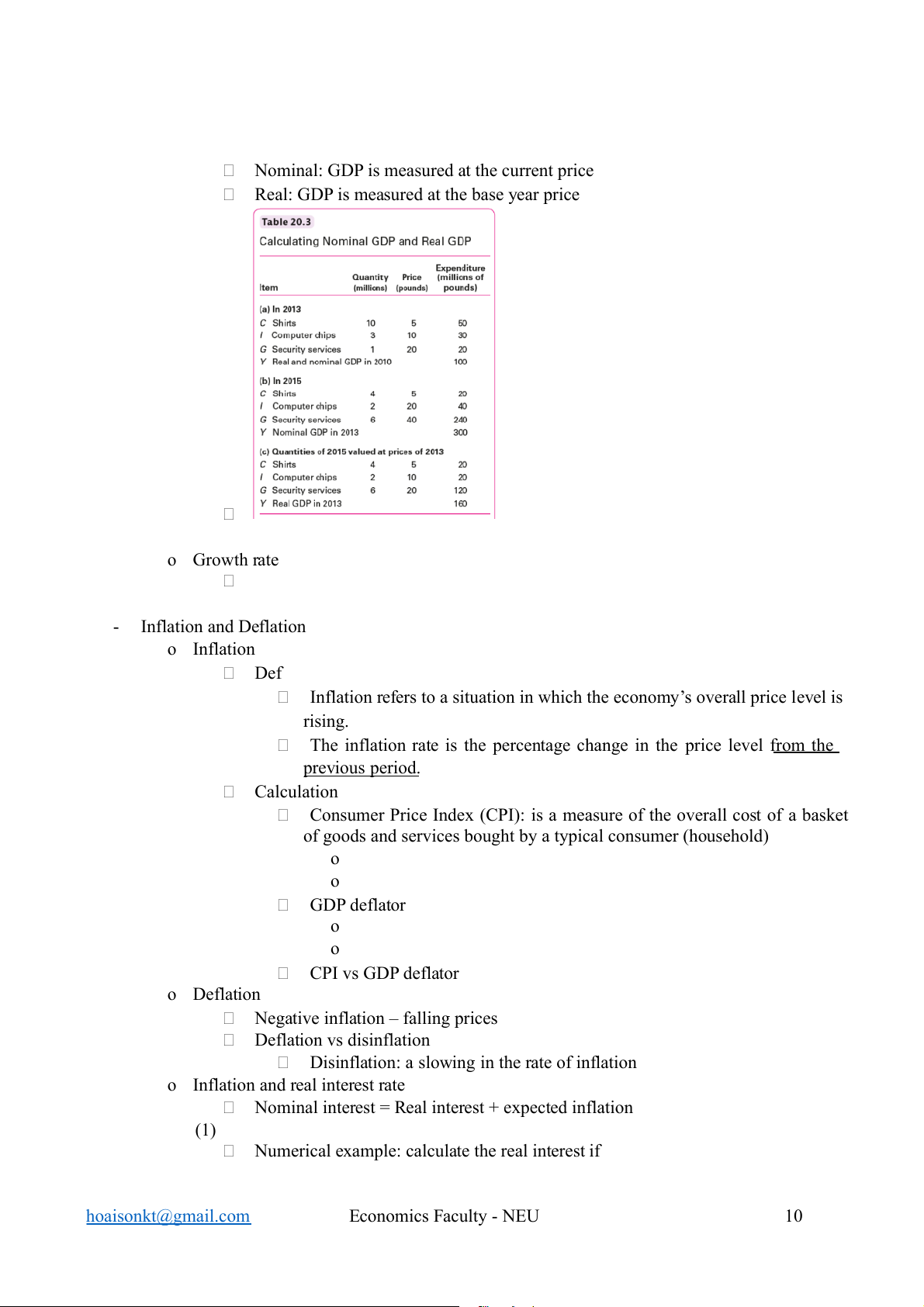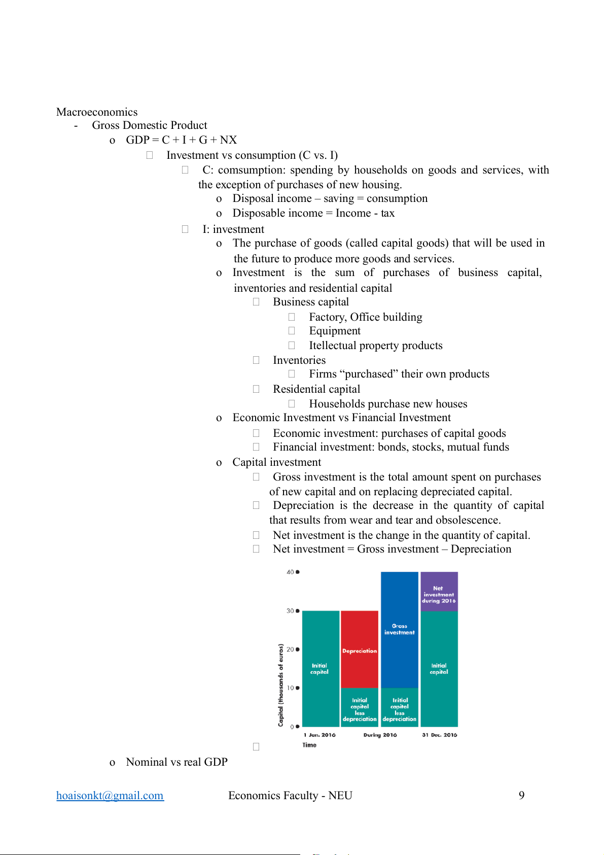 Net investment = Gross investment – Depreciation o Nominal vs real GDP hoaisonkt@gmail.com Economics Faculty - NEU 9