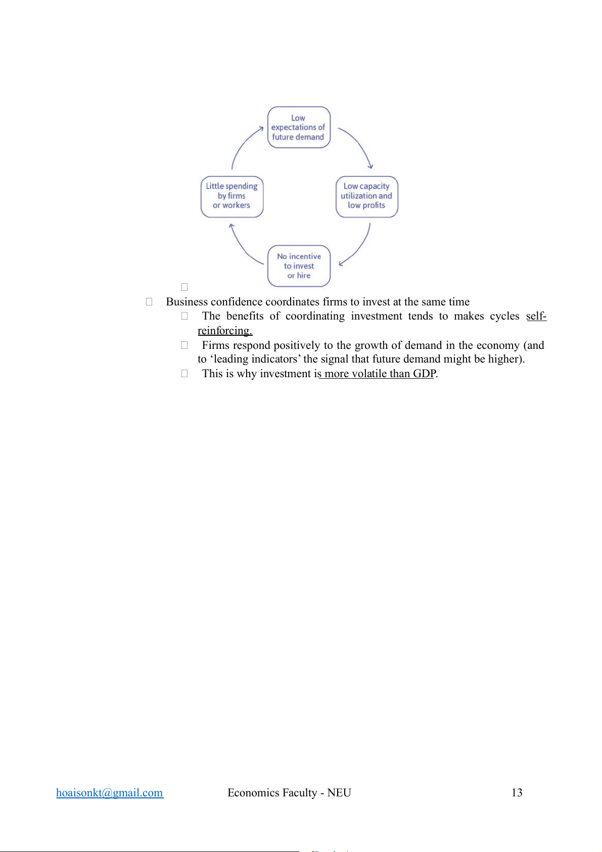 low demand → low capacity utilization, → low investment → future demand even lower hoaisonkt@gmail.com Economics Faculty - NEU 12