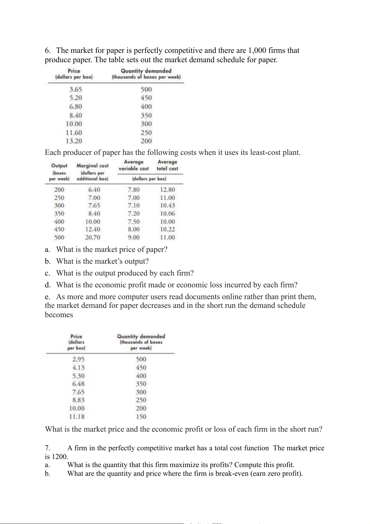 6. The market for paper is perfectly competitive and there are 1,000 firms that