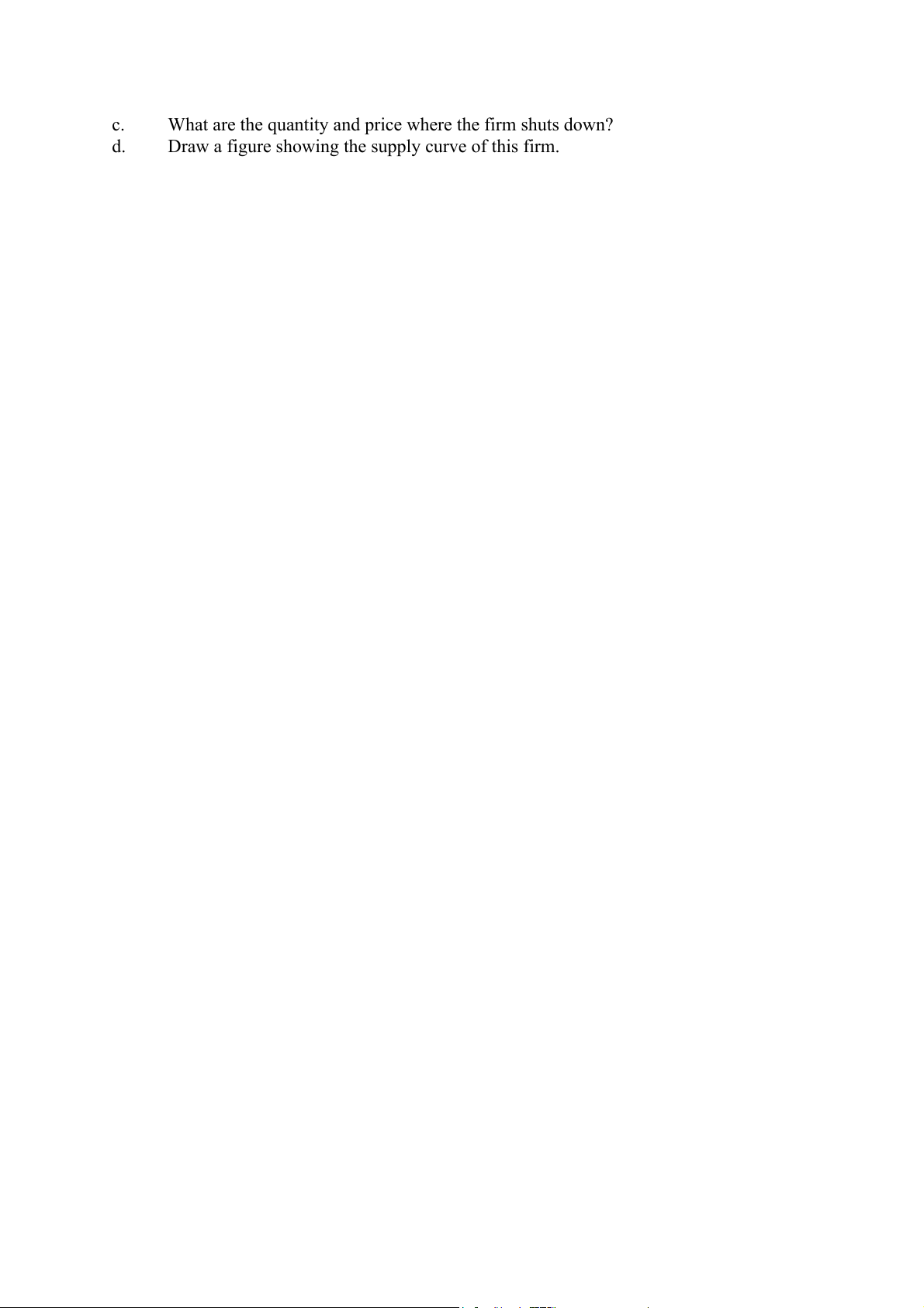 What are the quantity and price where the firm shuts down? d.