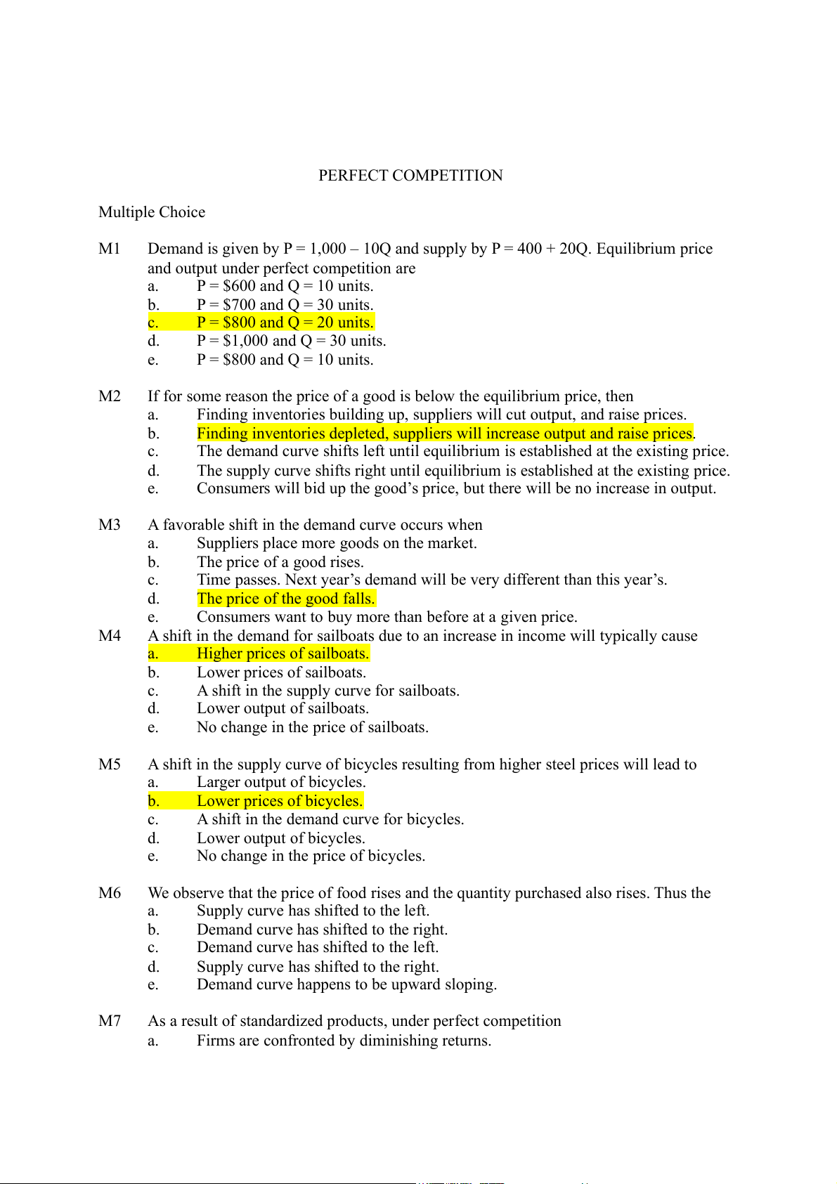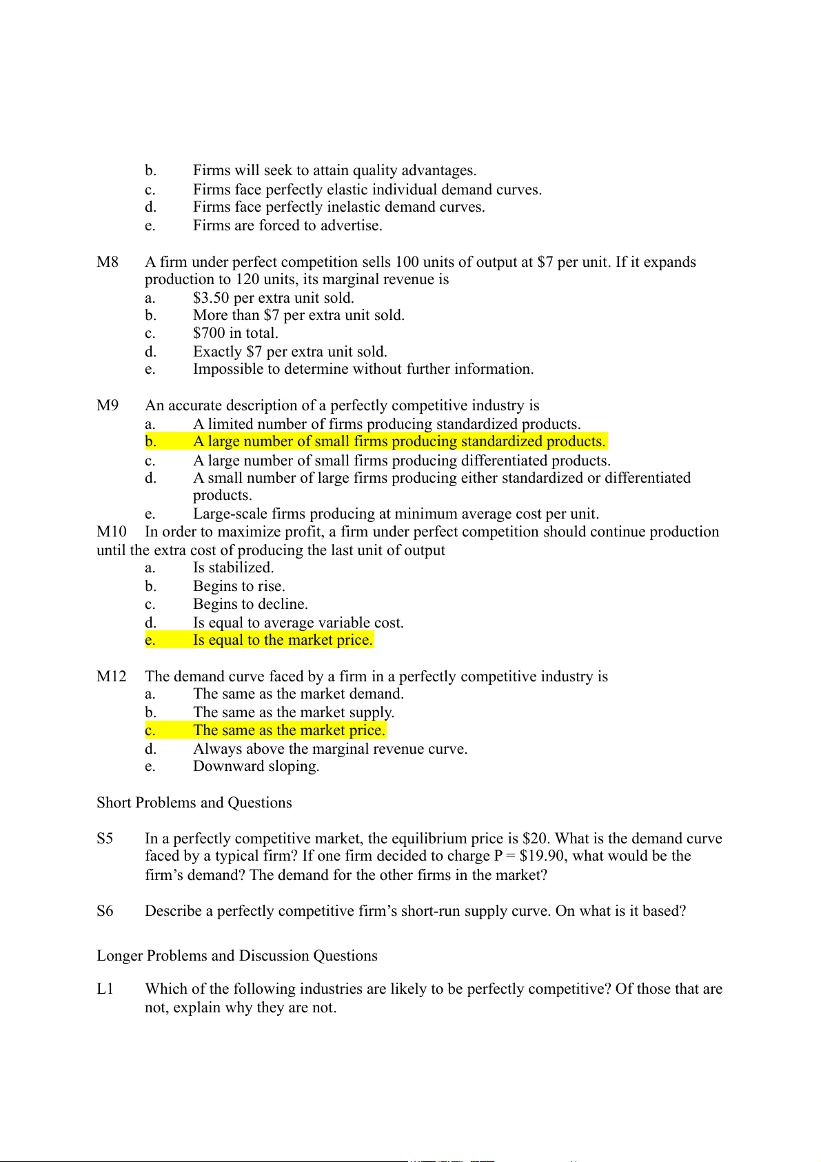 PERFECT COMPETITION Multiple Choice M1