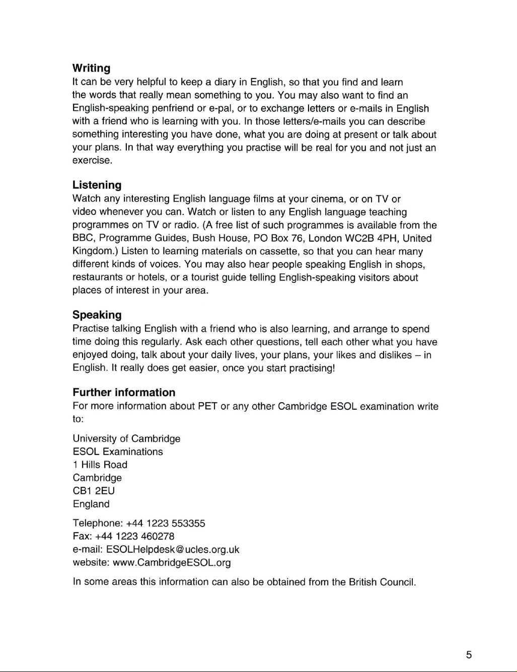 ôn thi PET reading and writing