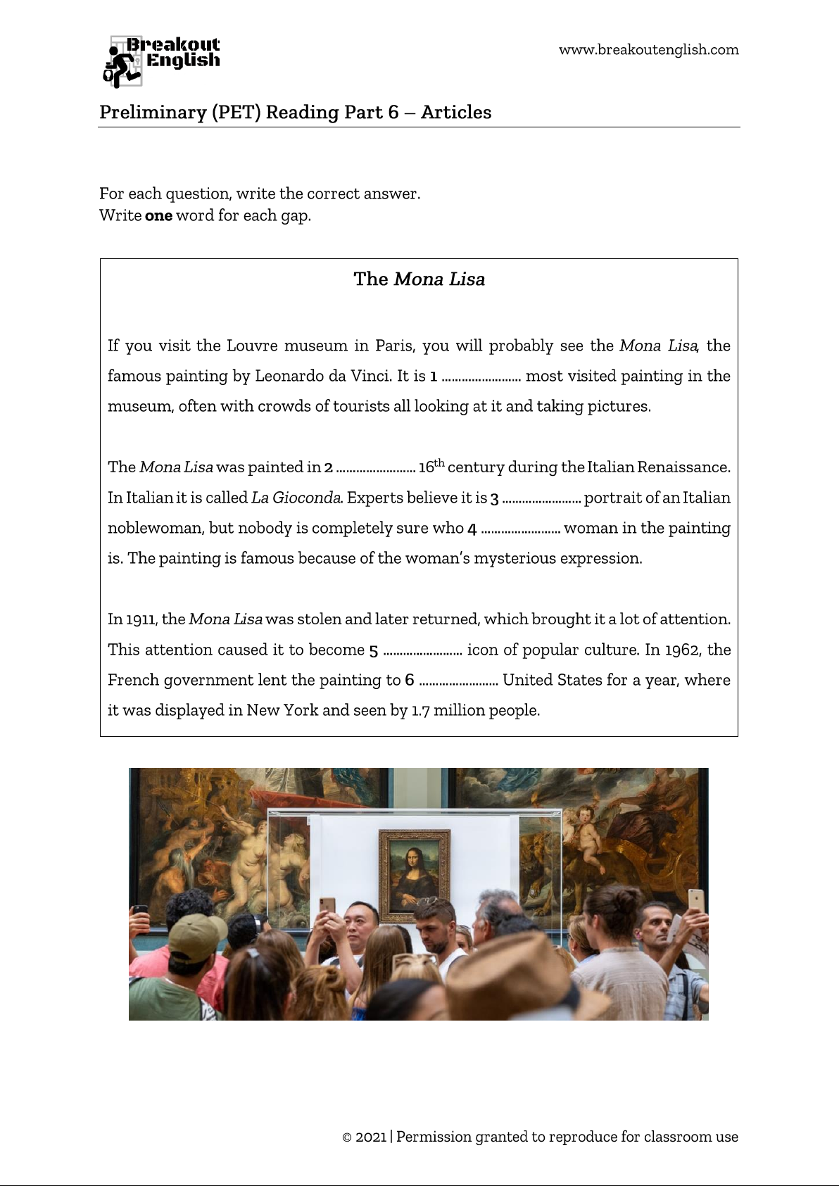 PET-Reading-Part-6-5-Open-Cloze-Tests | Tài liệu ôn tập Tiếng anh