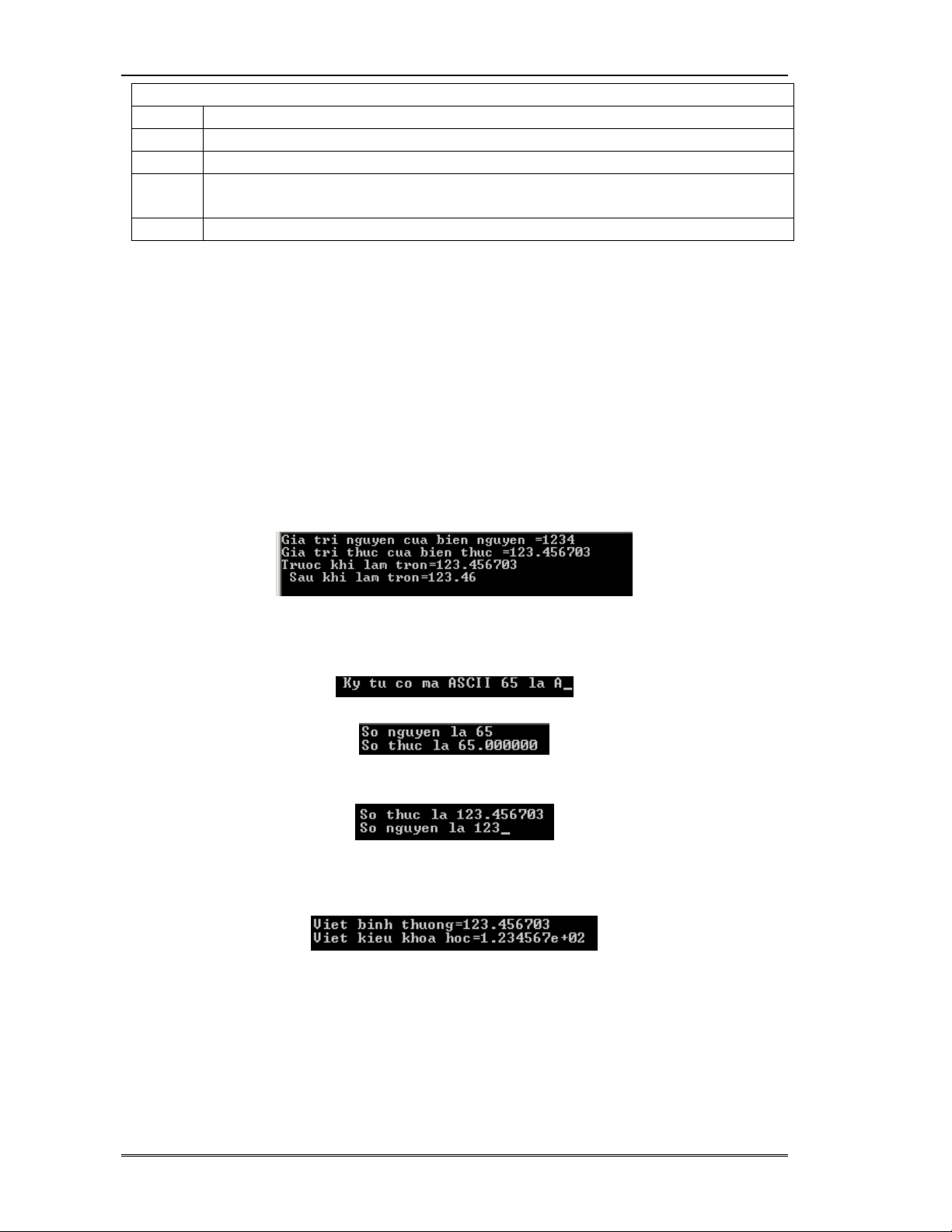 hoc=%e”,bien_thuc, bien_thuc); Kết quả in ra màn hình:
