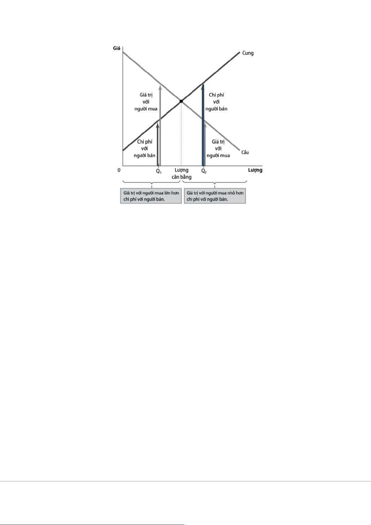 - Ở các mức thấp hơn lượng cân bằng ( Q1), giá trị với