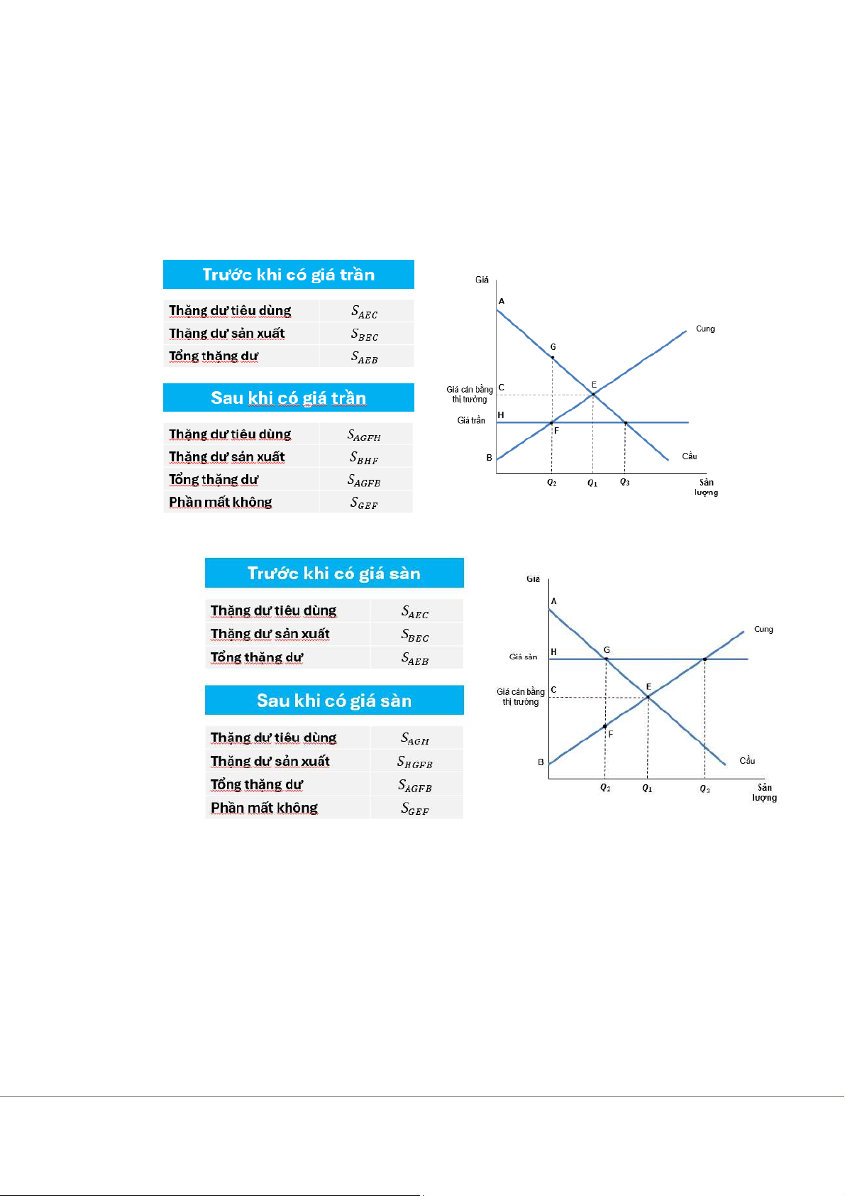 Thặng dư tiêu dùng : A+B+C+D+E+F Thặng dư sản xuất: G Tổng Thặng dư: (A+…F)+G