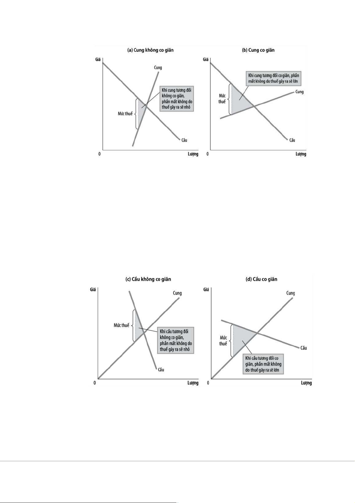 Đường cung càng co giãn thì phần mất không do thuế gây ra càng lớn.