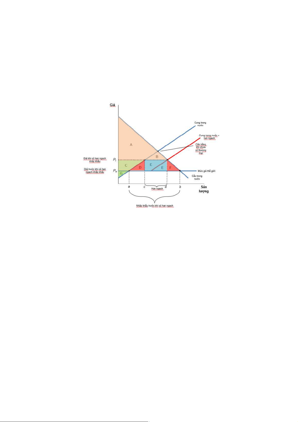 -Khi áp dụng hạn ngạch Thặng dư tiêu dùng: A+B Thặng dư sản xuất:C+G