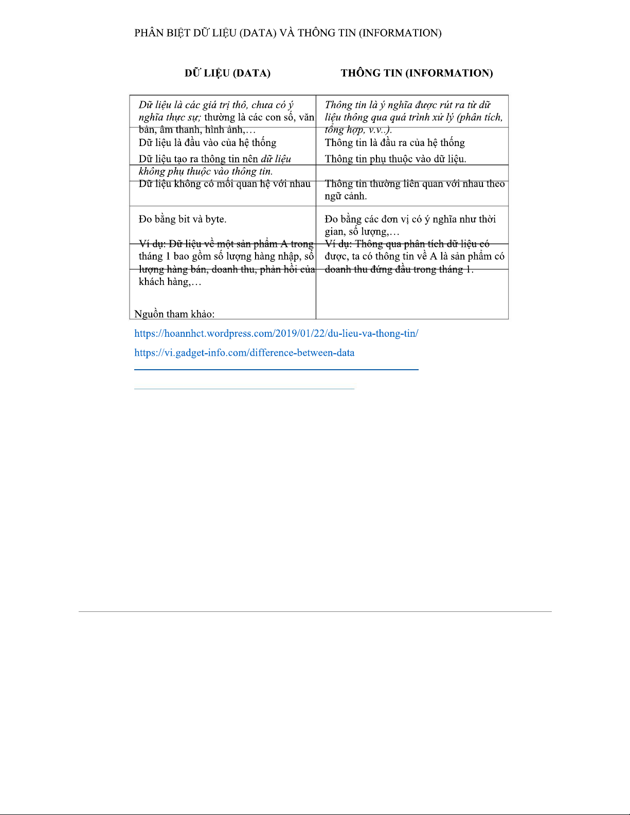 PHÂN BIỆT DỮ LIỆU VÀ THÔNG TIN: TỔNG HỢP THÔNG TIN CHI TIẾT