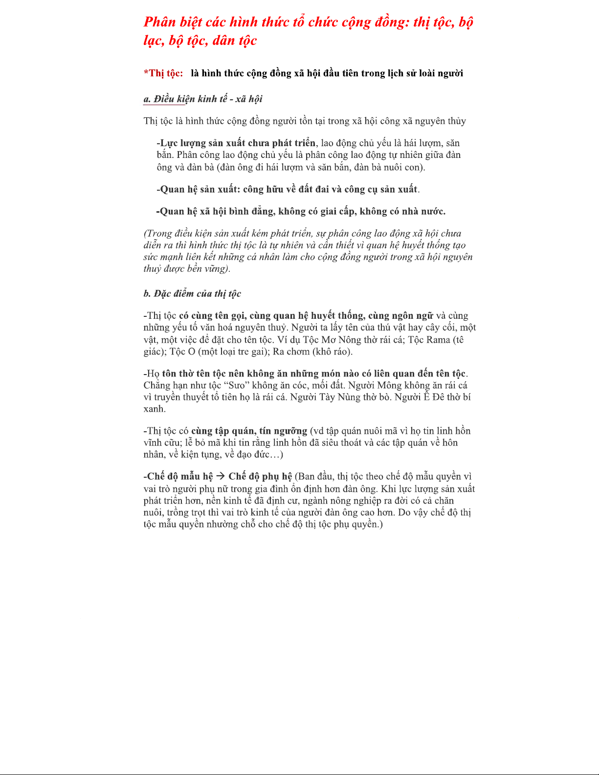 Phân biệt hình thức tổ chức cộng đồng: Thị tộc, Bộ lạc, Dân tộc