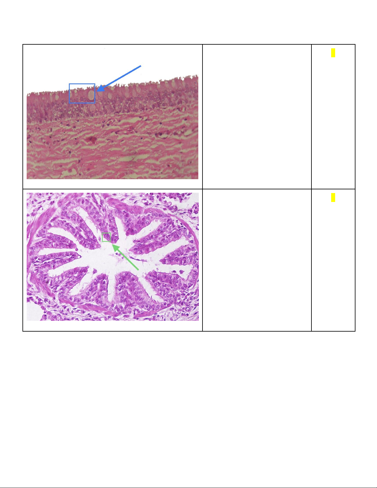 PHÂN BIỆT CÁC CẤU TRÚC MÔ QUA HÌNH ẢNH TẾ BÀO GÌ? B A. BM TRỤ TẦNG CÓ LÔNG CHUYỂN B. BM TRỤ GIẢ TẦNG CÓ LÔNG CHUYỂN C. BM TRỤ ĐƠN CÓ VI NHUNG MAO D. BM VUÔNG ĐƠN CÓ VI NHUNG MAO TẾ BÀO GÌ? C A. BM TRỤ TẦNG CÓ LÔNG CHUYỂN B. BM TRỤ GIẢ TẦNG CÓ LÔNG CHUYỂN C. BM TRỤ ĐƠN CÓ LÔNG CHUYỂN D. BM VUÔNG ĐƠN CÓ VI NHUNG MAO lOMoAR cPSD| 59691467 TẾ BÀO GÌ? A A. BM LÁT TẦNG SỪNG HOÁ B. BM LÁT ĐƠN SỪNG HOÁ C. BM LÁT TẦNG KHÔNG SỪNG HOÁ D. BM LÁT ĐƠN KHÔNG SỪNG HOÁ TẾ BÀO GÌ? D A. TẾ BÀO CƠ VÂN B. TẾ BÀO CƠ TIM C. TẾ BÀO CƠ TRƠN D. TẾ BÀO MỠ lOMoAR cPSD| 59691467 MÔ GÌ? B A. MÔ LIÊN KẾT ĐẶC B. MÔ LIÊN KẾT THƯA C. BÓ SỢI COLLAGEN D. TẤT CẢ SAI BIỂU MÔ GÌ? B A. BM LÁT TẦNG SỪNG HOÁ B. BM LÁT TẦNG KHÔNG SỪNG HOÁ C. BM TRỤ ĐƠN SỪNG HOÁ D. BM TRỤ ĐƠN KHÔNG SỪNG HOÁ lOMoAR cPSD| 59691467 BIỂU MÔ GÌ? D A. BM VUÔNG ĐƠN B. BM TRỤ ĐƠN C. BM TRỤ GIẢ TẦNG D. BM VUÔNG TẦNG MÔ GÌ? A A. MÔ LIÊN KẾT ĐẶC B. MÔ LIÊN KẾT THƯA C. BÓ SỢI COLLAGEN D. TẤT CẢ SAI lOMoAR cPSD| 59691467 BIỂU MÔ GÌ? C A. BM TRỤ ĐƠN CÓ VI NHUNG MAO B. BM VUÔNG ĐƠN CÓ VI NHUNG MAO