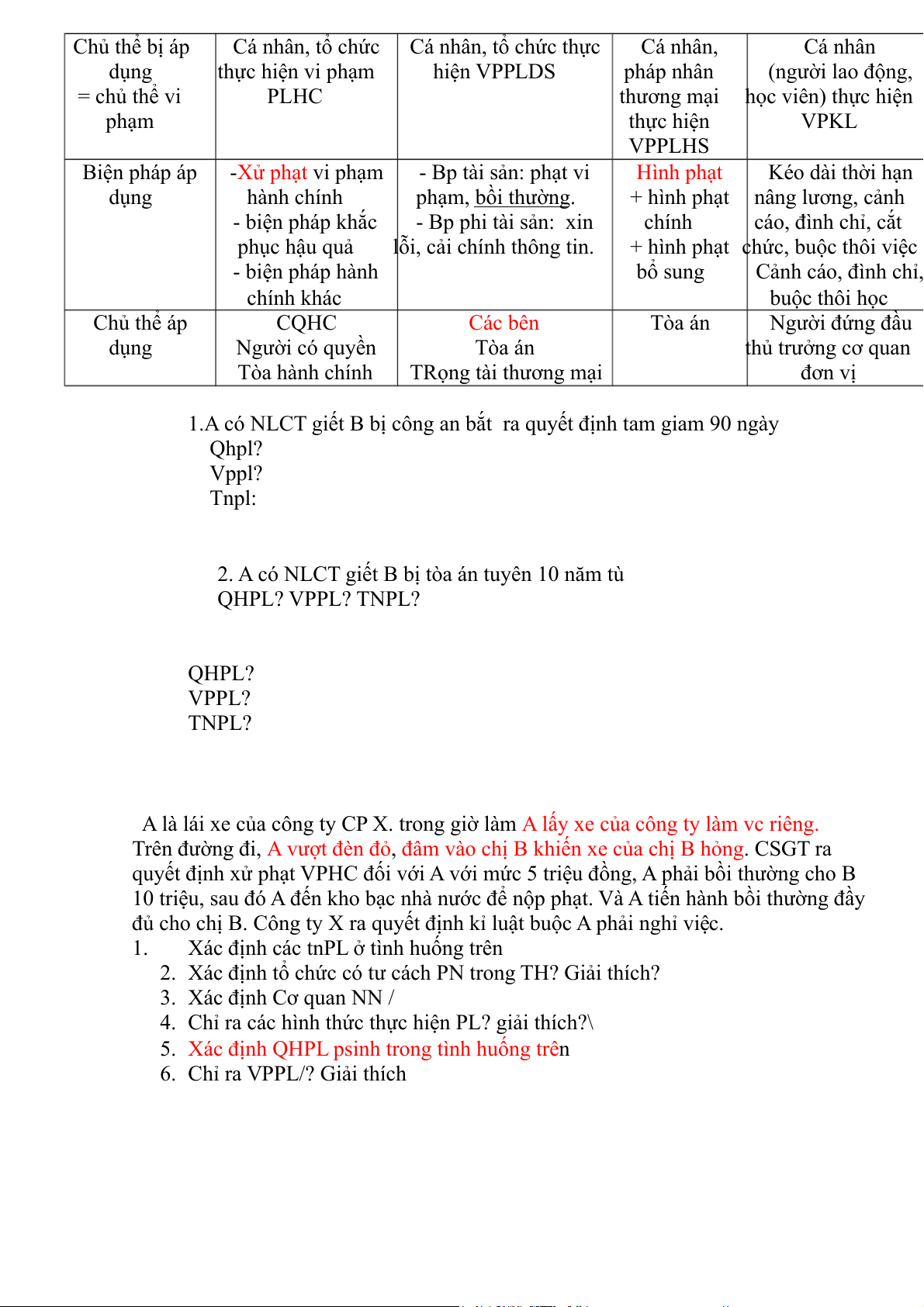 2. A có NLCT giết B bị tòa án tuyên 10 năm tù QHPL? VPPL? TNPL? QHPL? VPPL? TNPL?