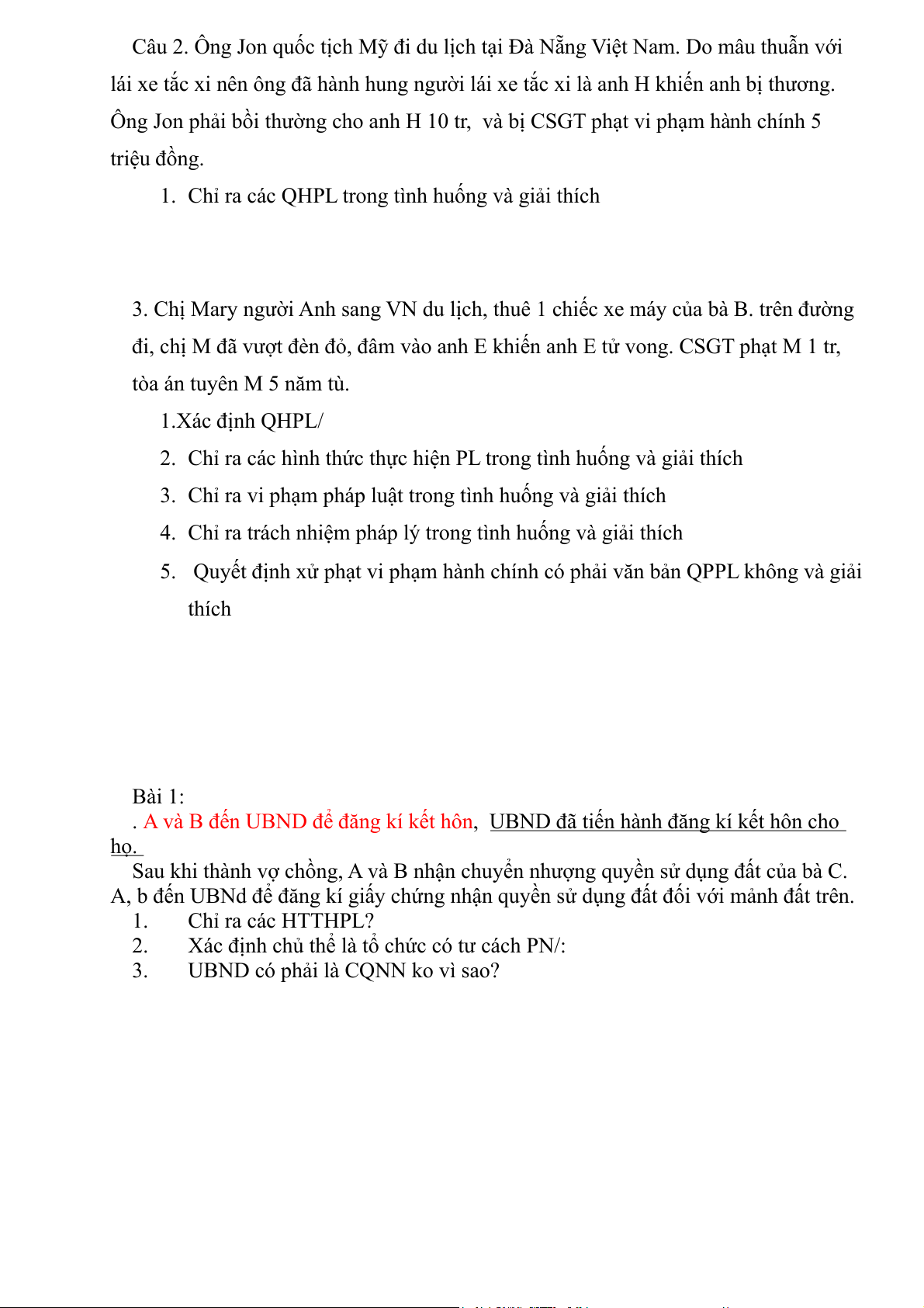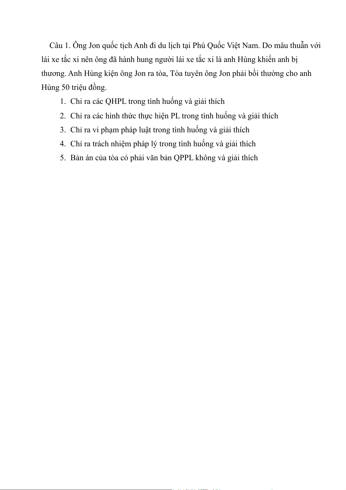 Câu 1. Ông Jon quốc tịch Anh đi du lịch tại Phú Quốc Việt Nam. Do mâu thuẫn với