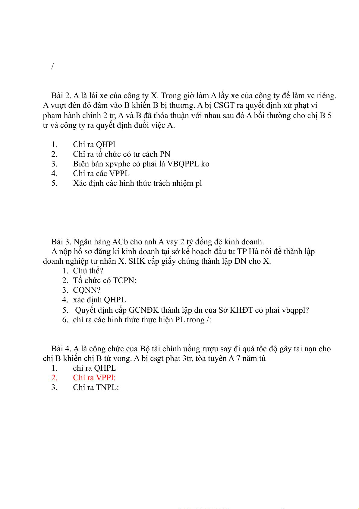 2. Chỉ ra các VPPl và trách nhiệm PL