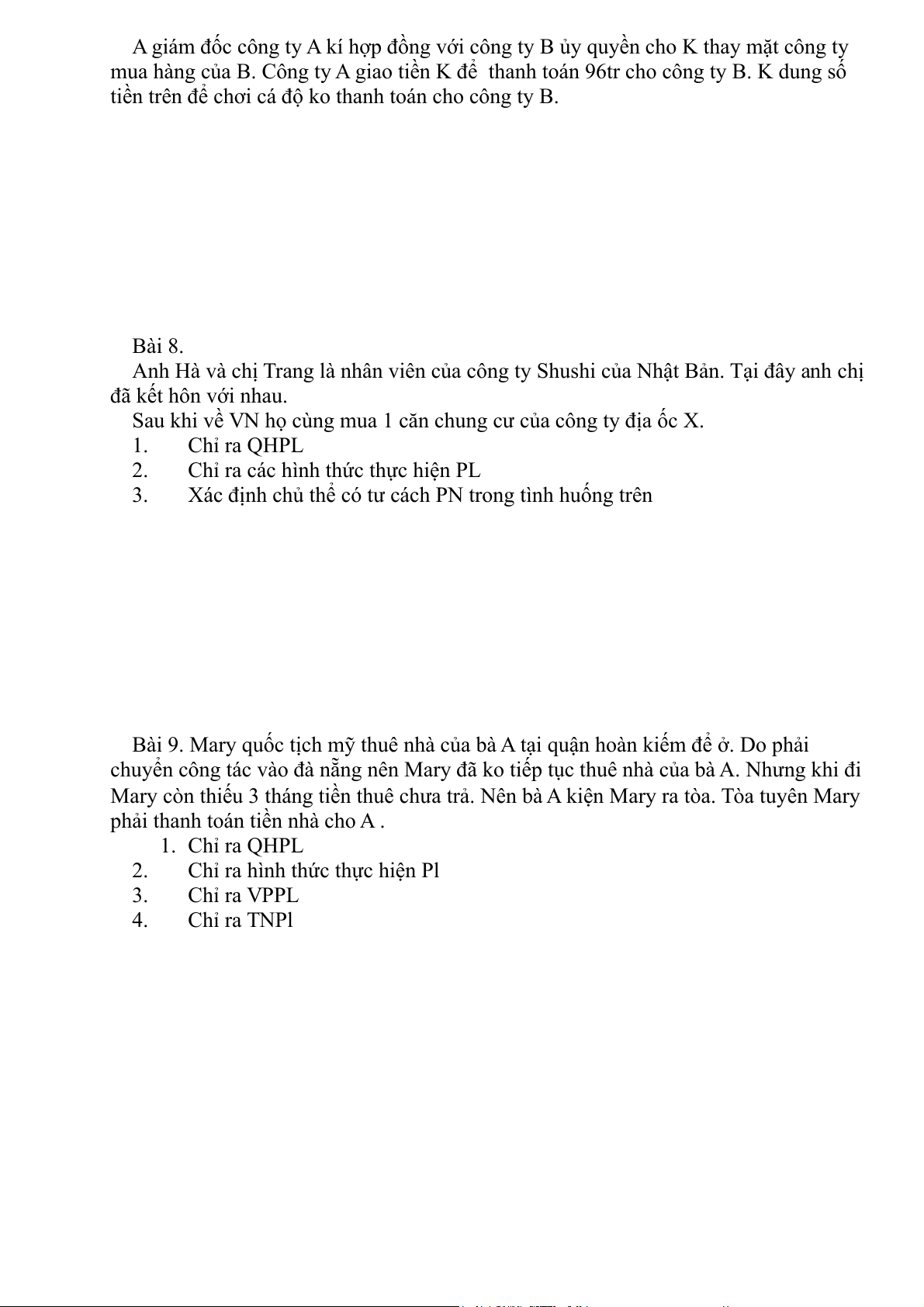 Bài 9. Mary quốc tịch mỹ thuê nhà của bà A tại quận hoàn kiếm để ở. Do phải