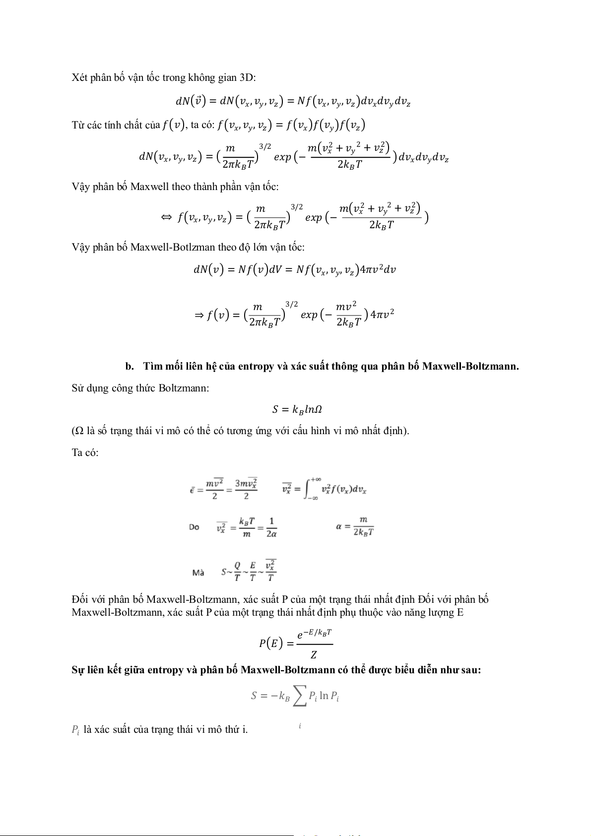 b. Tìm mối liên hệ của entropy và xác suất thông qua phân bố Maxwell-Boltzmann.
