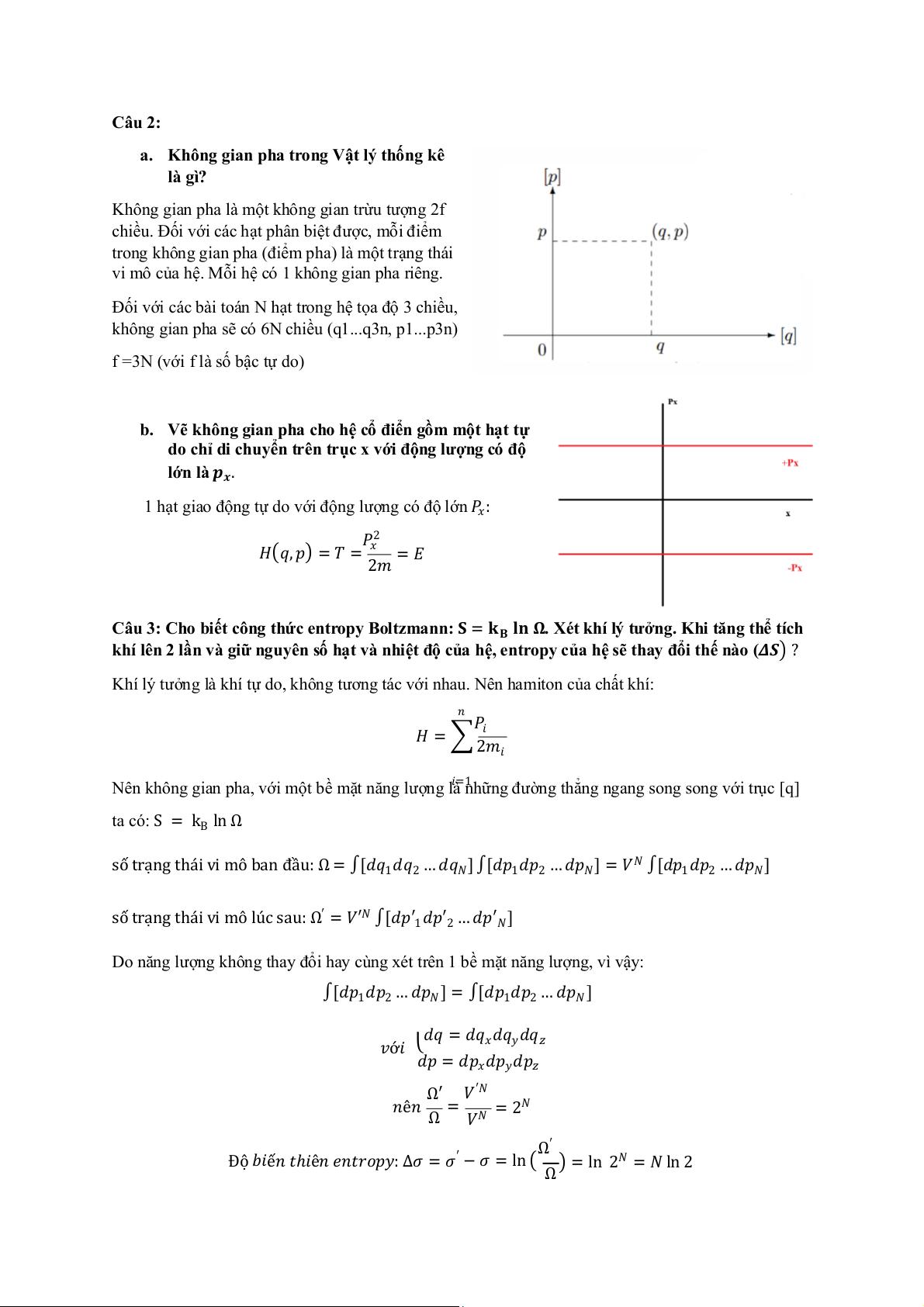 Câu 3: Cho biết công thức entropy Boltzmann: 𝐒 = 𝐤𝐁 𝐥𝐧 𝛀. Xét khí lý tưởng. Khi tăng thể tích