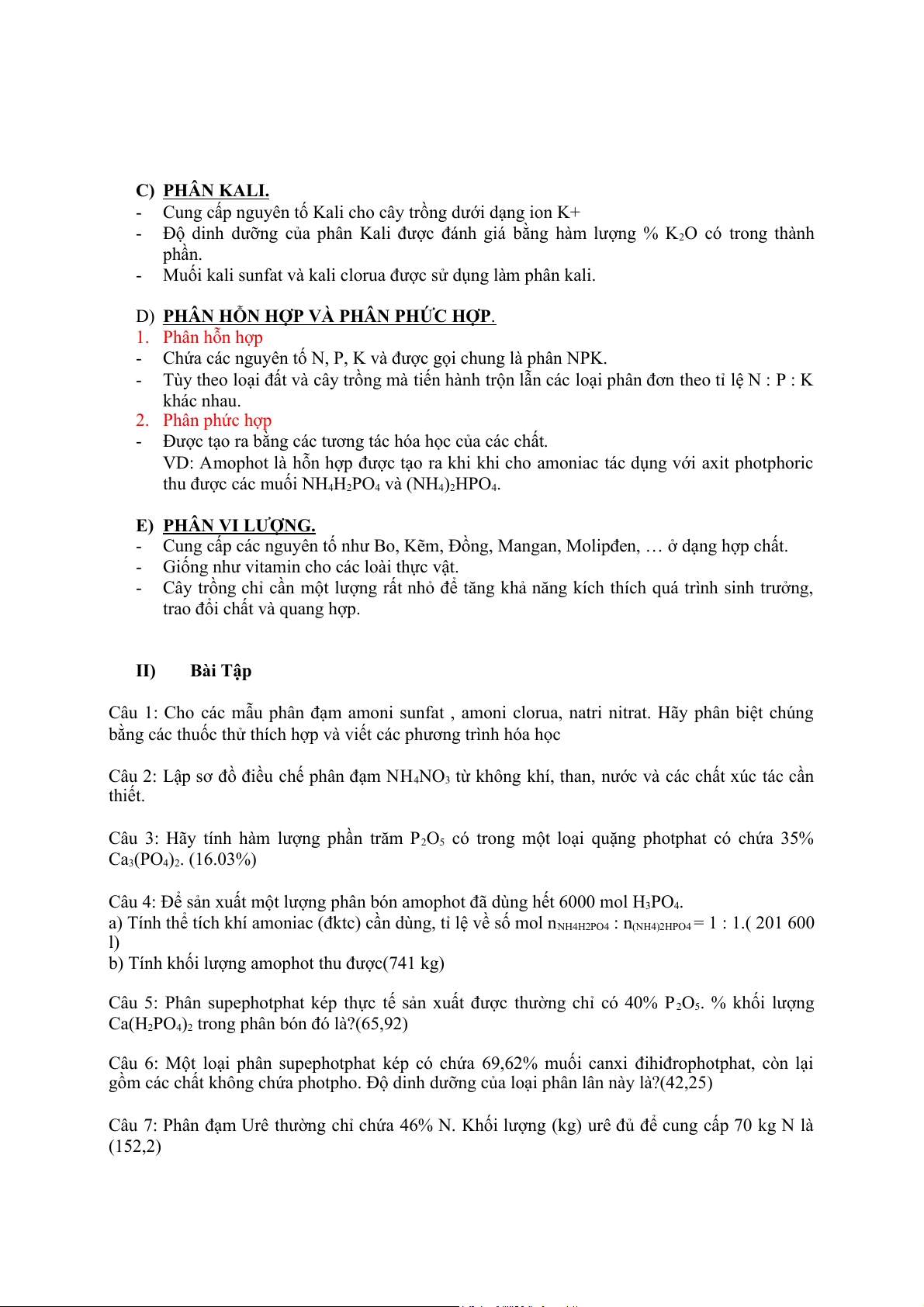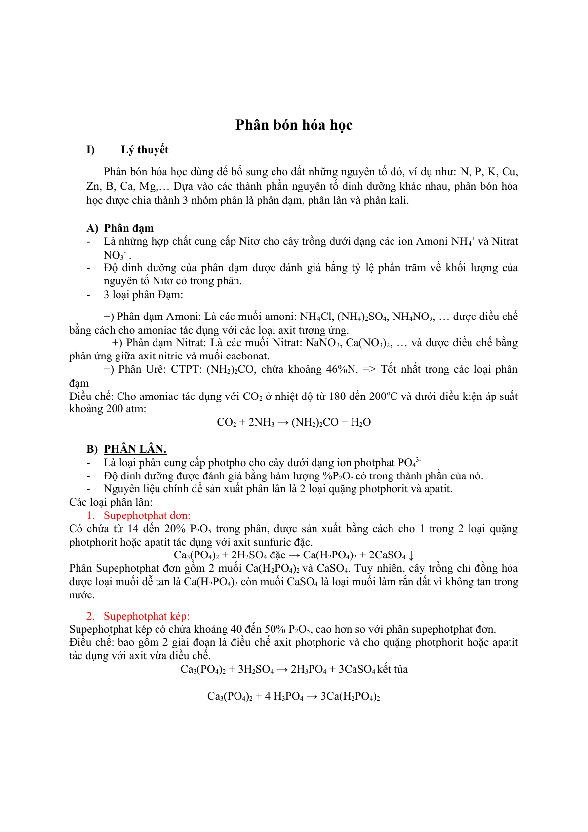 Phân bón hóa học I) Lý thuyết
