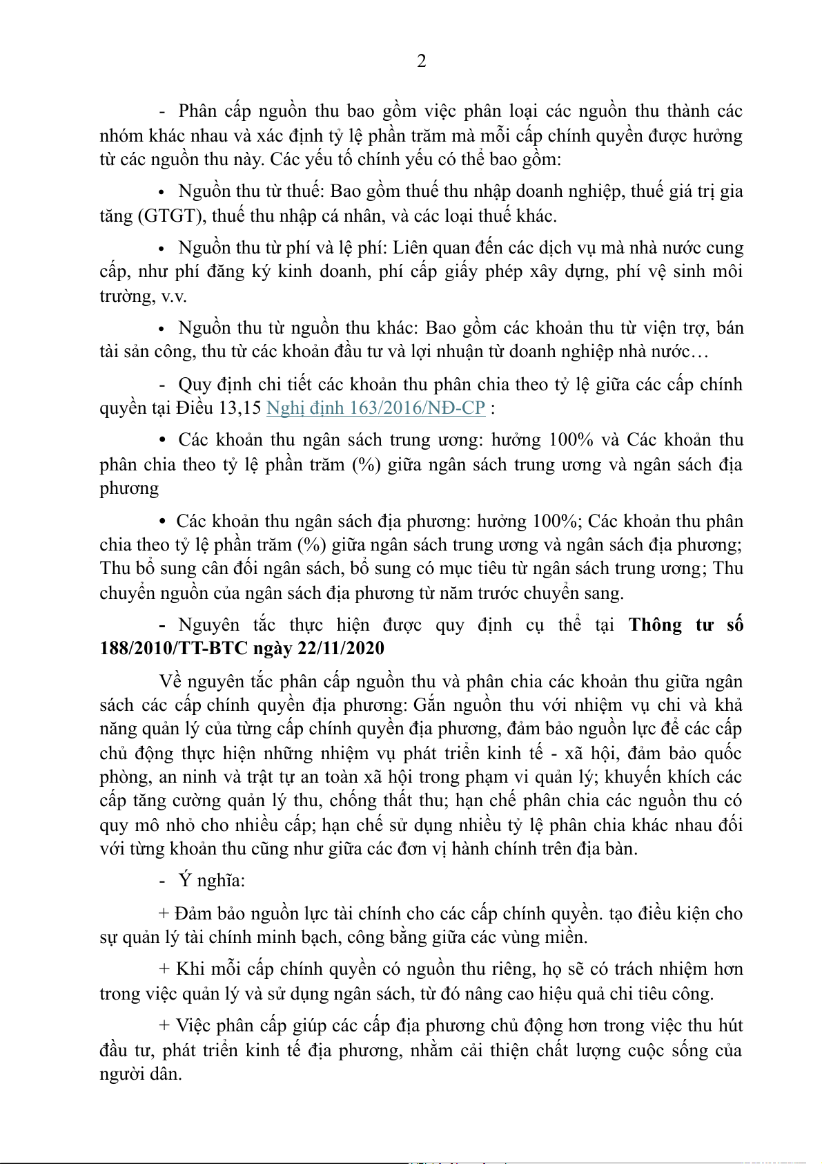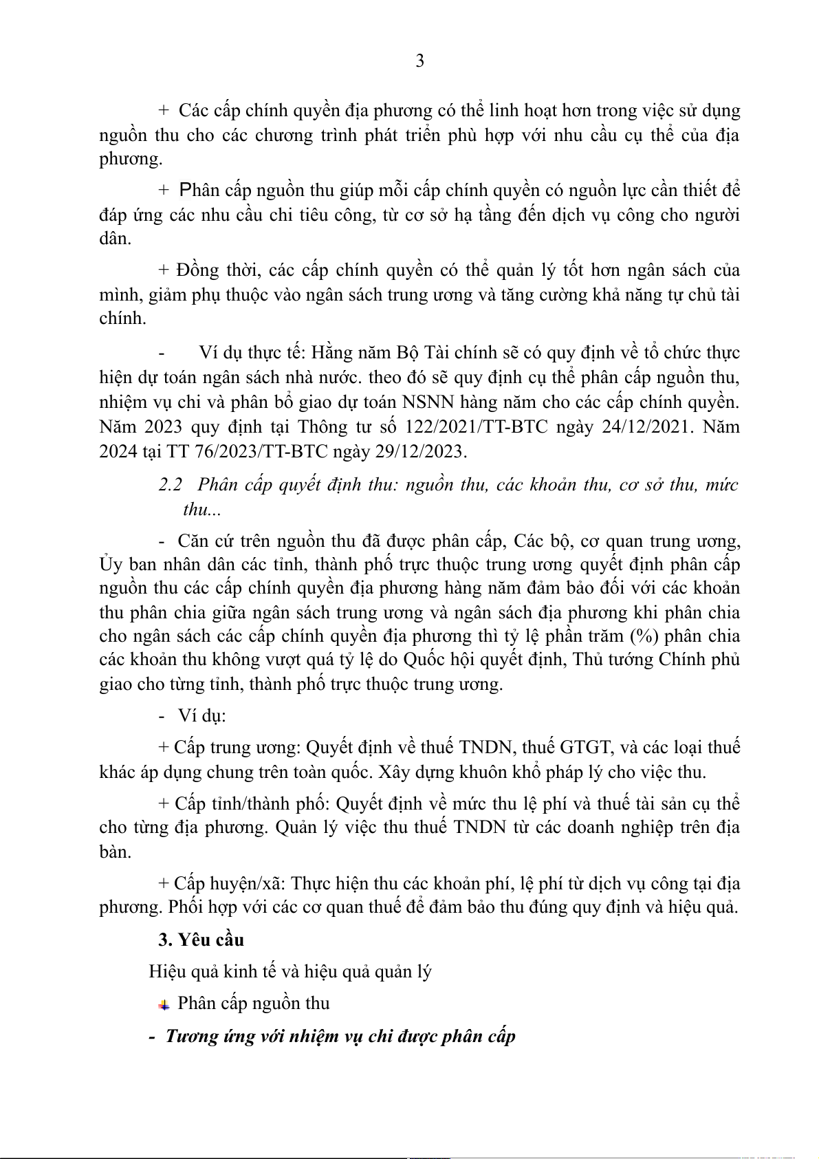 2.2 Phân cấp quyết định thu: nguồn thu, các khoản thu, cơ sở thu, mức thu...