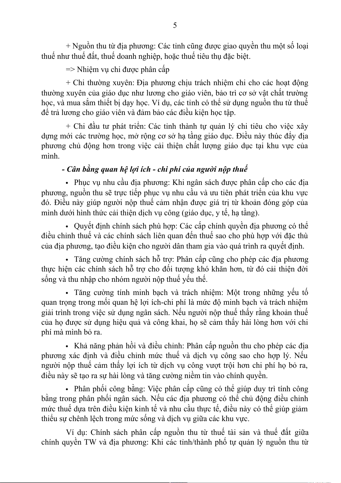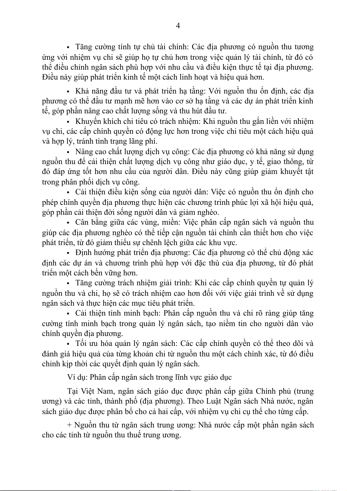 + Khi mỗi cấp chính quyền có nguồn thu riêng, họ sẽ có trách nhiệm hơn